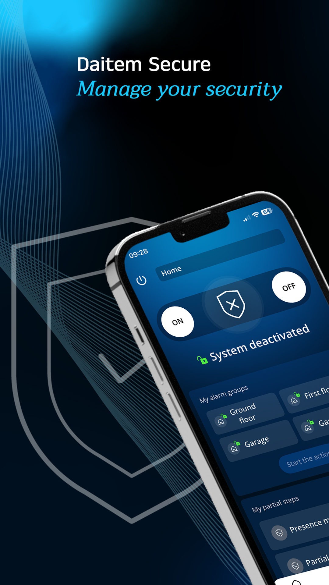 Control your security system remotely with the Daitem Secure application and be instantly alerted to any abnormal event on the protected premises. Whether it's for your home or your business, you can access in a few clicks all the following features, wherever you are: - arming (partial or total) and disarming the alarm system - be notified of alarms and events by push notification, with a specific ringtone - control of automatic systems and lighting: gate, garage door, awnings... - viewing on demand or on an event occurrences in the protected area: video or image capture - viewing of archived videos - consultation of event history - creation of manual scenarios (e.g., ""I'm leaving"": activation of the alarm, lights off, garage door opening) or on event (e.g., on intrusion detection: closing of the awnings, lighting of the garden and interior lighting) - programming of automatic start/stop - Temporary activation/deactivation of a product (e.g., the detector protecting the kitchen while you are working) - create secondary users and assign rights (partial or total access to the system) This application is practical and user-friendly and includes a demonstration mode that will allow you to discover its various features. Made in France (near Grenoble) and with more than one million installations in Europe over the last 45 years, Daitem offers you quality, ultra-reliable equipment for the protection of property and people. Discourage intruders Because your security also concerns the surroundings of your home or business, outdoor motion detectors trigger the alarm and scare off intruders before they enter your property. Alert and view from a distance Whether you're on the road, on holiday or simply at work, you stay in touch with your home. The image capturing detectors and cameras allow you to see everything that happens in your home on your application. You are warned by a notification of any abnormal event, you can act on your system remotely or alert the police in case of confirmed break-in. Protect against potential risks Fire, power outage, power failure, freezing, flooding or carbon monoxide, Daitem systems can warn you about any threat. Guarantee a real-time reaction Remote monitoring complements your security: the remote monitor is ready to check in real time if the alert requires a call to the police. Access to the cameras is only possible when the alarm is triggered, your privacy is preserved. For more information, contact your Daitem installer or visit www.daitem.com