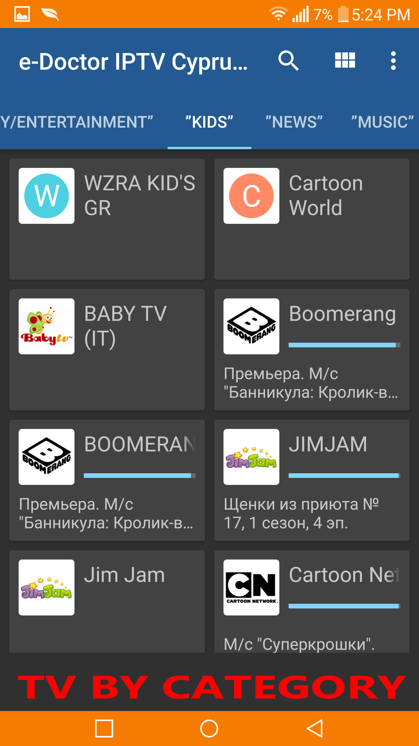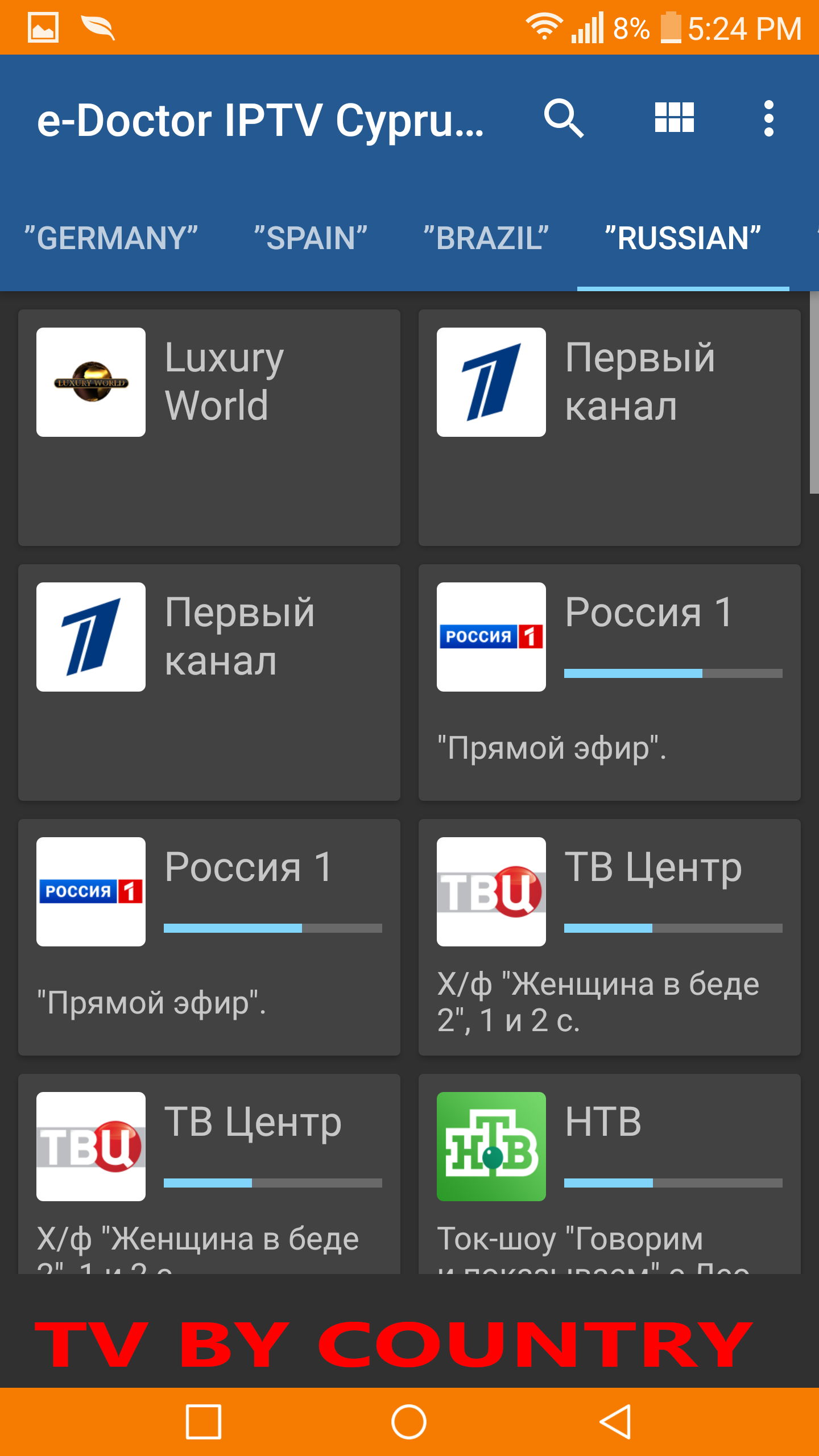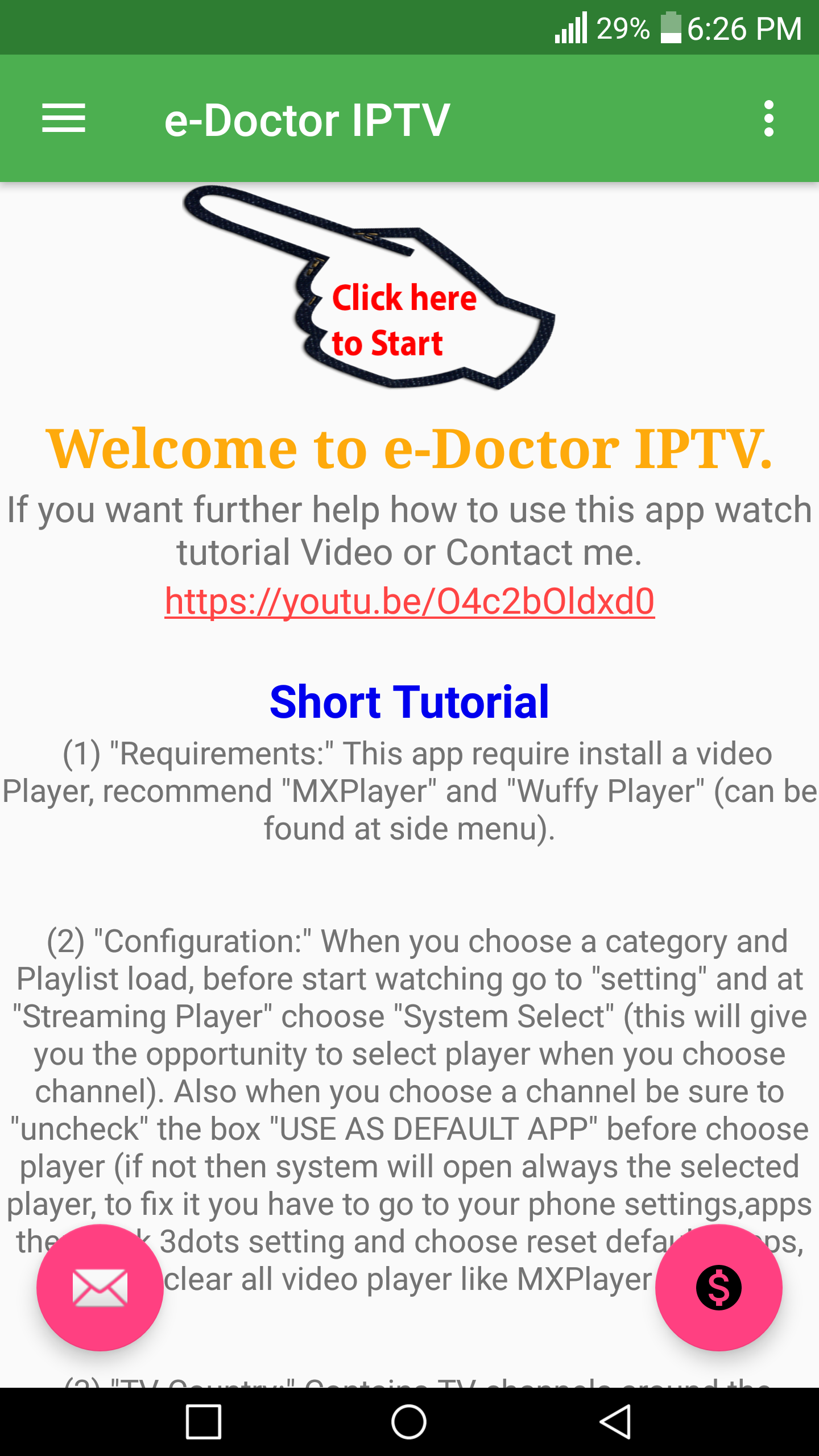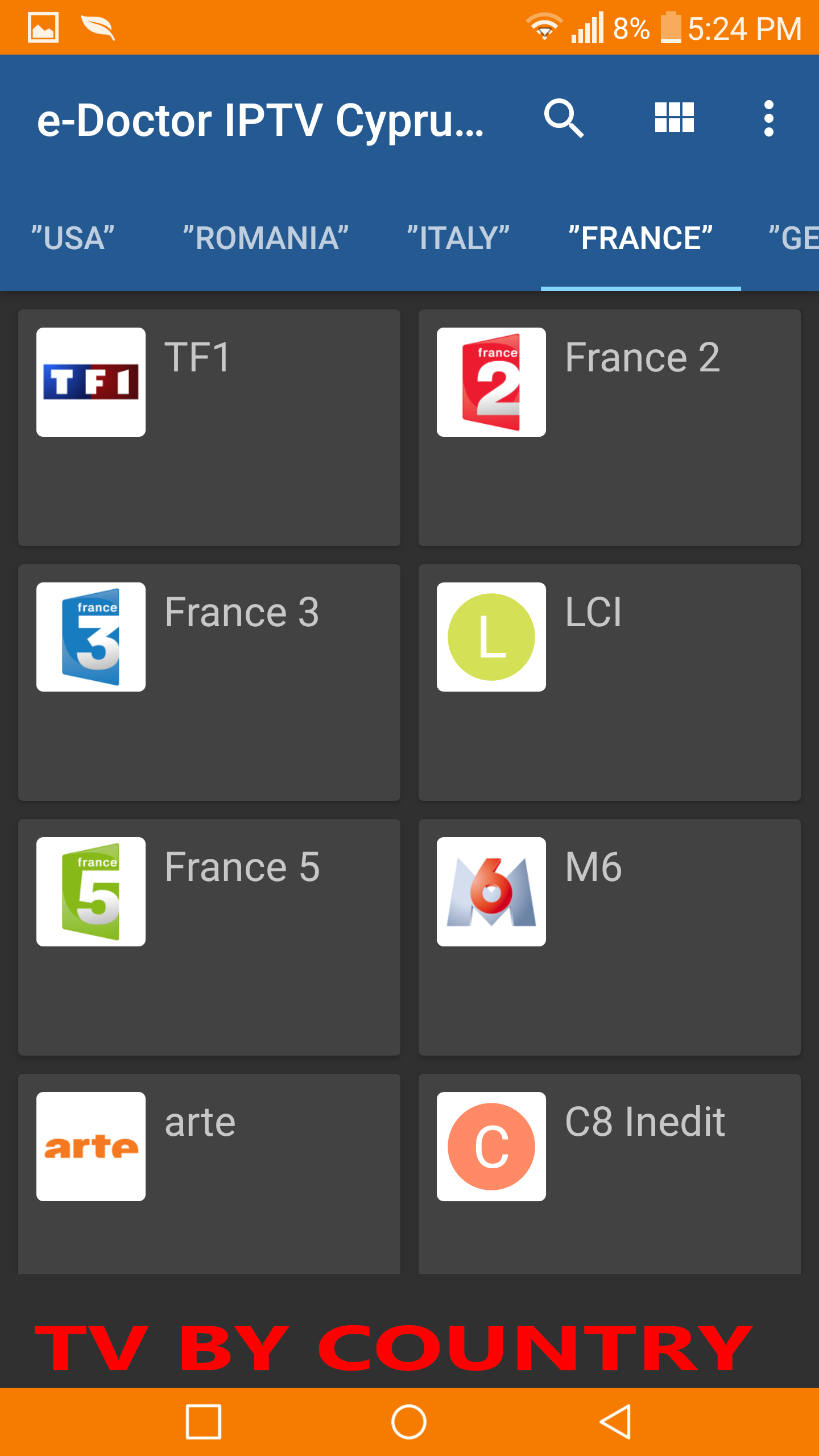 WARNING: We don't stream any channel, all contest is a copyright of their owner. This app provide channels ONLY for testing purpose. If you like them please pay legal channels provider for extreme quality and stability. We are not responsible for any non working links as is streamer decision to stop free streaming. NOTE: IPTV Core Required for this app to work (without iptvcore this app is useless). NOTE: Before you Install you agree you have to install extra apps for this app to work, otherwise don't install. NOTE: This app has ads when you start and when you choose category, if you don't like that please don't install. NOTE: Watch Tutorial Video for Help. If still Problems Contact us, we will answer you within few hours. e-Doctor IPTV is the best iptv app for watching TV, P2P TV & Sports and listening Radio through your internet connection. With automatic channel list updated you can watch TV or listen to Radio just using your phone or tablet anywhere. Even at home using android TV box directly to your TV. TV List: By country (currently Cyprus, Greece, USA,UK,France,Germany,Spain, India.... etc) (REQUIRED enable MXPLAYER "Loop one" FOR "USA_LOOP-ONE" etc.) By category (Documentation/entertainment, Kids, News, Music, Sports, Cinema) -English Language available. P2P Live Sports (Redirects you to website with updated matches) P2P TV (Romania, Bulgarian, Russian (some with English) categories) Radio List: By country (currently Cyprus, Greece, UK, Germany, Spain ) By category (Some English Music Channels by Category) VOD List: KIDS Movies Also Working EPG (electronic program guide) for Greece and Russian channels is available (Choose Tile). App requirements: - Internet connection of-course :) (at least 5MBs) - IPTV Core (install from Google Play) - Video Player (recommend MXPlayer,VLC for acestream P2P) - Youtube Player for some Channels - Acestream and Sop to Http for P2P TV and Sports. Note1: List updated every week without the need to update application. Note2: App needs a few seconds to load list and epg. Configure app to change Video Player (see last photos) - After choose category Go to settings (upper right dots) - At Streaming Player Choose System Select (will ask you which player to use for the channel you choose). Configure MXPlayer for normal Multi language support: - Go to settings - Decoder - Find "SW decoder (network)" and check the box. If you want English (or any language) as Default audio language - Go to settings - Audio - Find "Preferred audio Language" and choose your preferred language (you can choose more than one). Fix MXPlayer AC3 not supported - Download codecs from "https://forum.xda-developers.com/devdb/project/dl/?id=25033" - After download complete open MXPlayer and when prompt "codecs found use them'' click yes. MXPlayer should restart and everything should work.