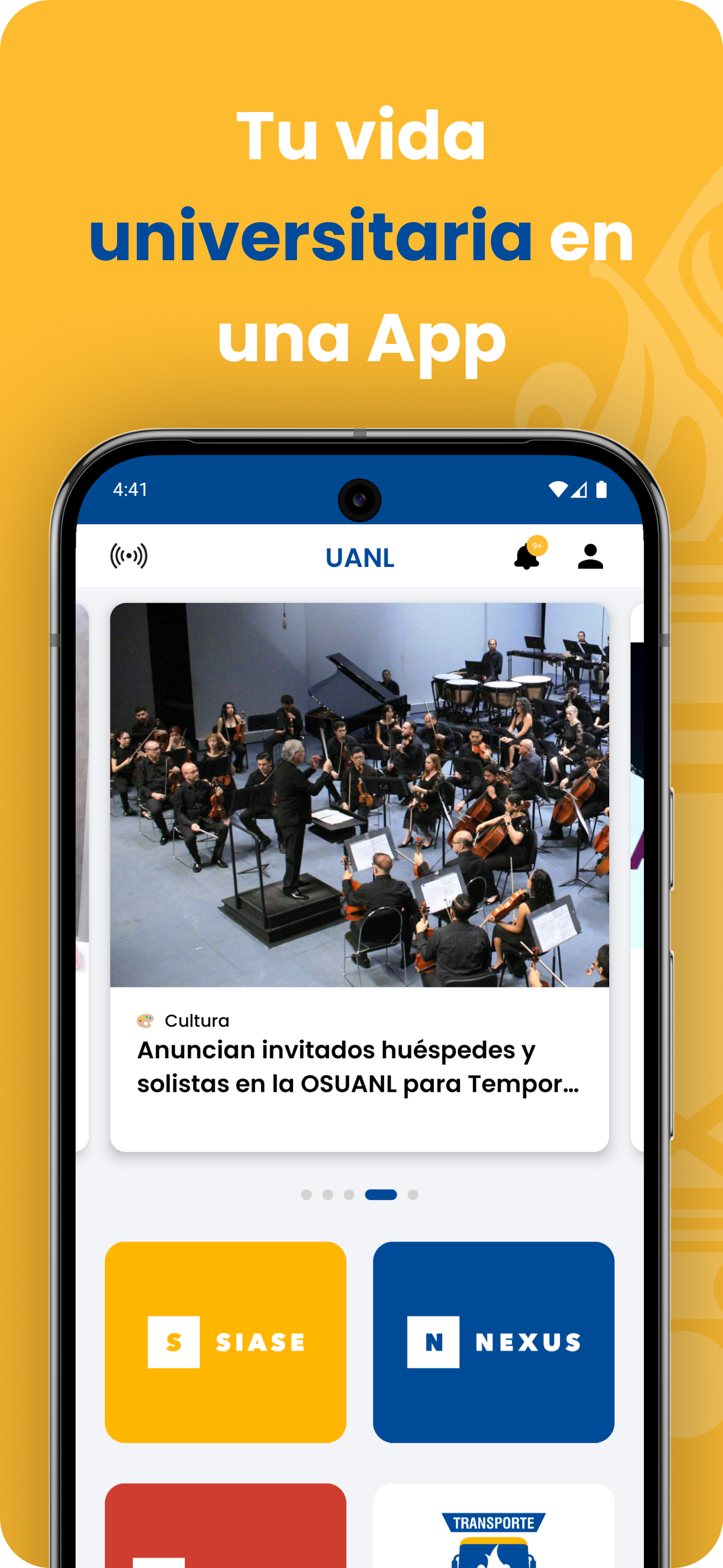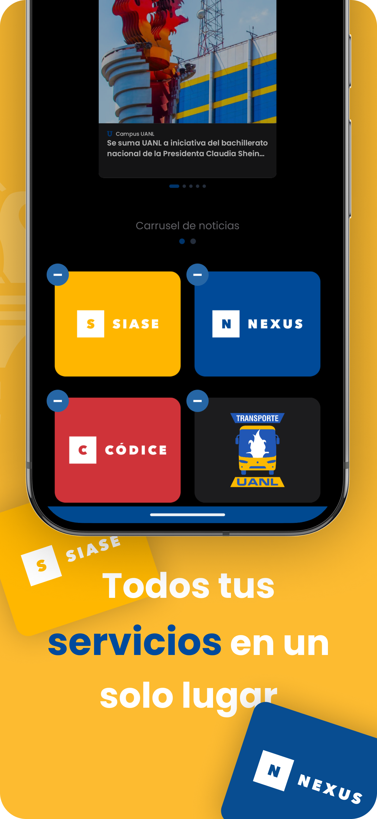 e-UANL Campus Digital is the official application of the Autonomous University of Nuevo León for its students. With this application it is possible to access the online services that accompany students in their academic life, as well as other complementary services to promote their safety, transfer and attention online. With e-UANL Campus Digital, students can see their transcript, schedule and grades, as well as configure notifications for their classes, linking them to their current schedule. Nexus is also available, with display of Learning Units, assigned tasks, activation and configuration of notifications for the schedule and homework deliveries, which can also be uploaded by scanning or uploading from the App. To complement the academic activity, the Códice system is integrated with the search in the UANL library catalog, in which physical or digital resources can be located. Some other functionalities that the e-UANL App has are, for example, the display of the student's virtual credential in the user profile; access to Microsoft Teams, in which tasks are displayed and personalized notifications are configured; list of upcoming events at the UANL and direct access to the Secure Attend App for face-to-face activities at the University facilities. And to support the organization of students' day-to-day activities, this App integrates the Tigrebus ticketing system, where you can request your tickets according to the route you want. And in case of doubts, requests and for direct attention to students, the Uni Online system, a help desk for UANL services, is integrated into the App.