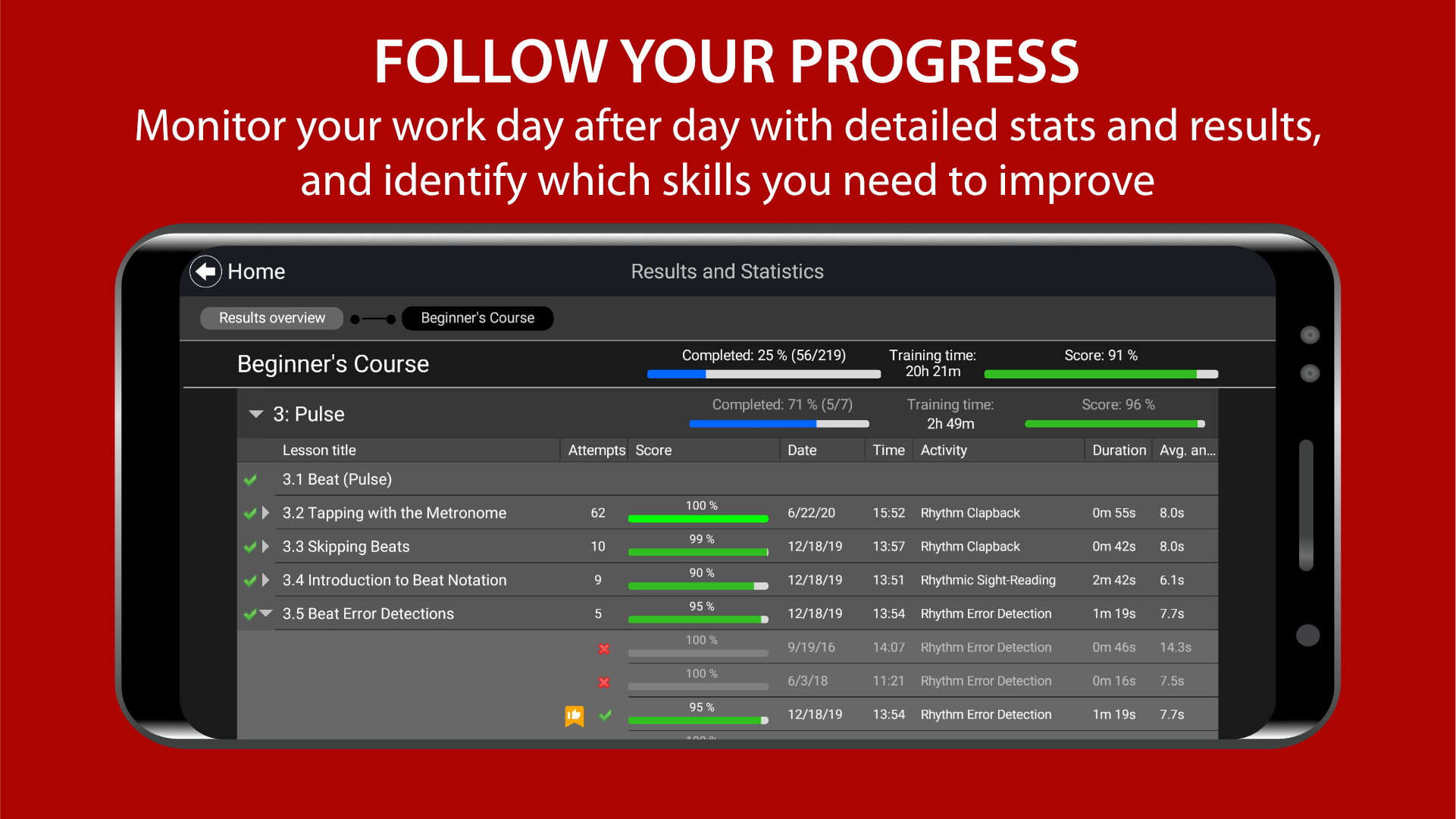 RHYTHM TRAINING - Tap! tap! tap! Sight-read, dictate and tap back rhythms, and get instant feedback on your performance.
