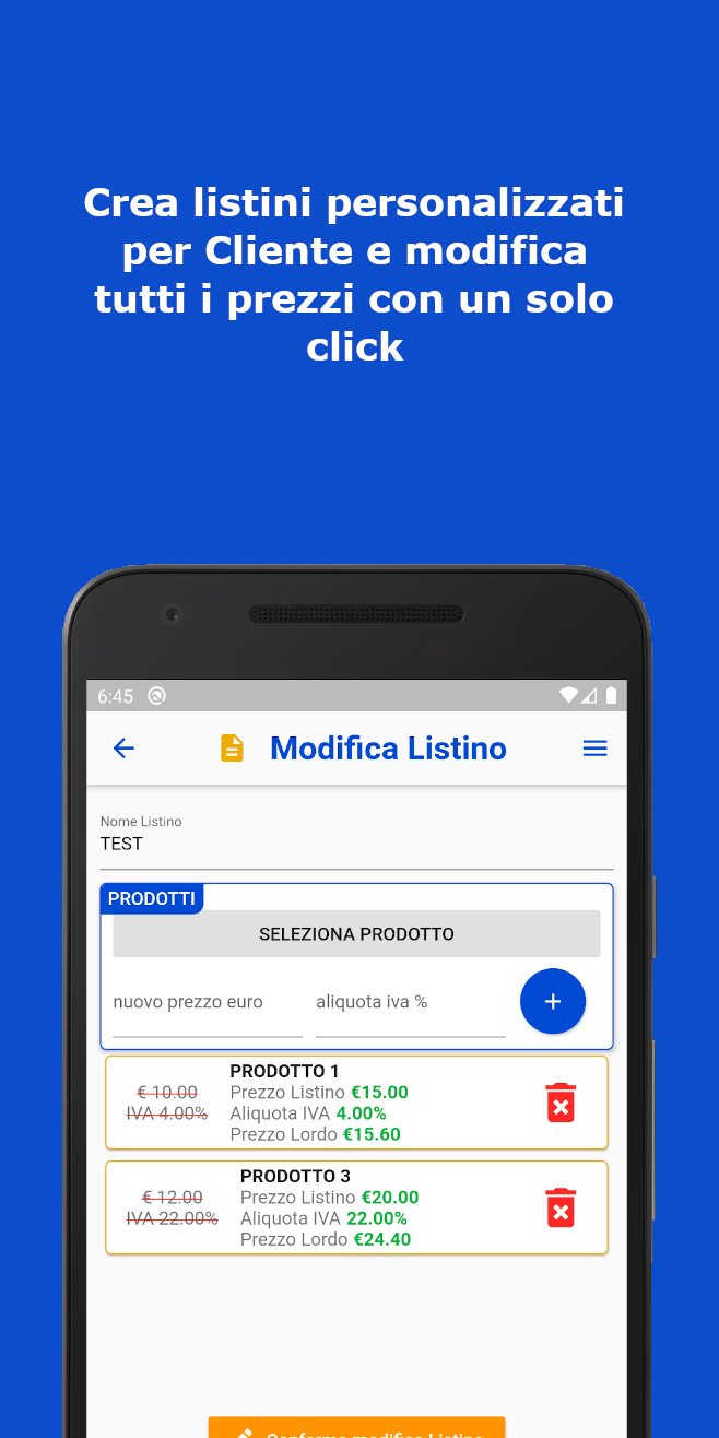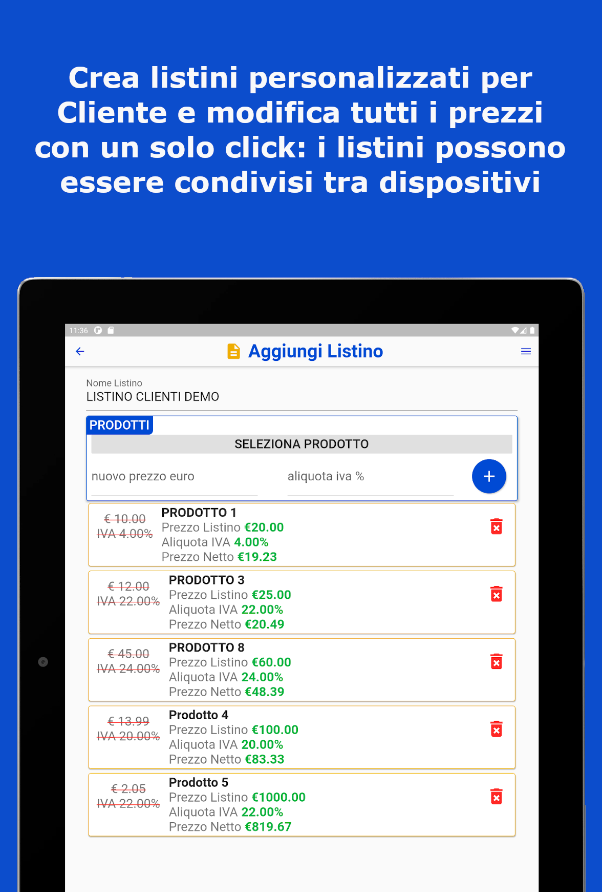 - Creation of price lists with customized prices for each type of customer and price differentiation;