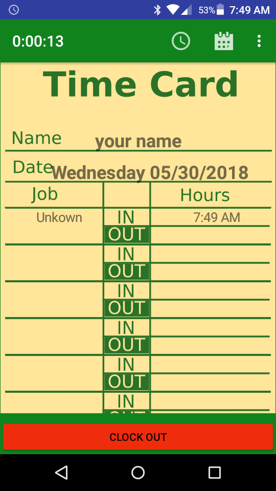 Easy Time Card (Package Name: com.cagneymoreau.easytimecard) is developed by Signal Hill Technology and the latest version of Easy Time Card 9.9 was updated on December 2, 2019. Easy Time Card is in the category of Productivity. You can check all apps from the developer of Easy Time Card and find 60 alternative apps to Easy Time Card on Android. Currently this app is for free. This app can be downloaded on Android 5.0+ on APKFab or Google Play. All APK/XAPK files on APKFab.com are original and 100% safe with fast download.