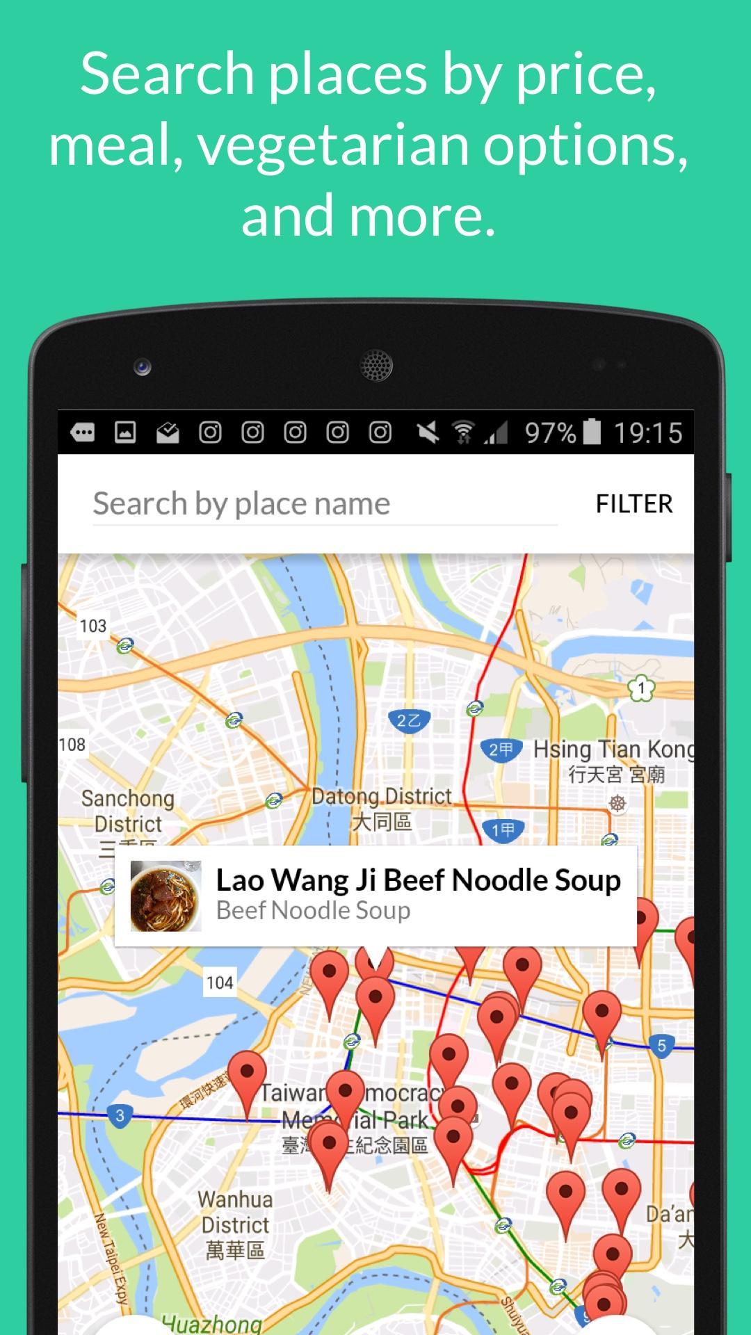 ● Search for a place that suits your palate - price, meal, type of food, you name it.