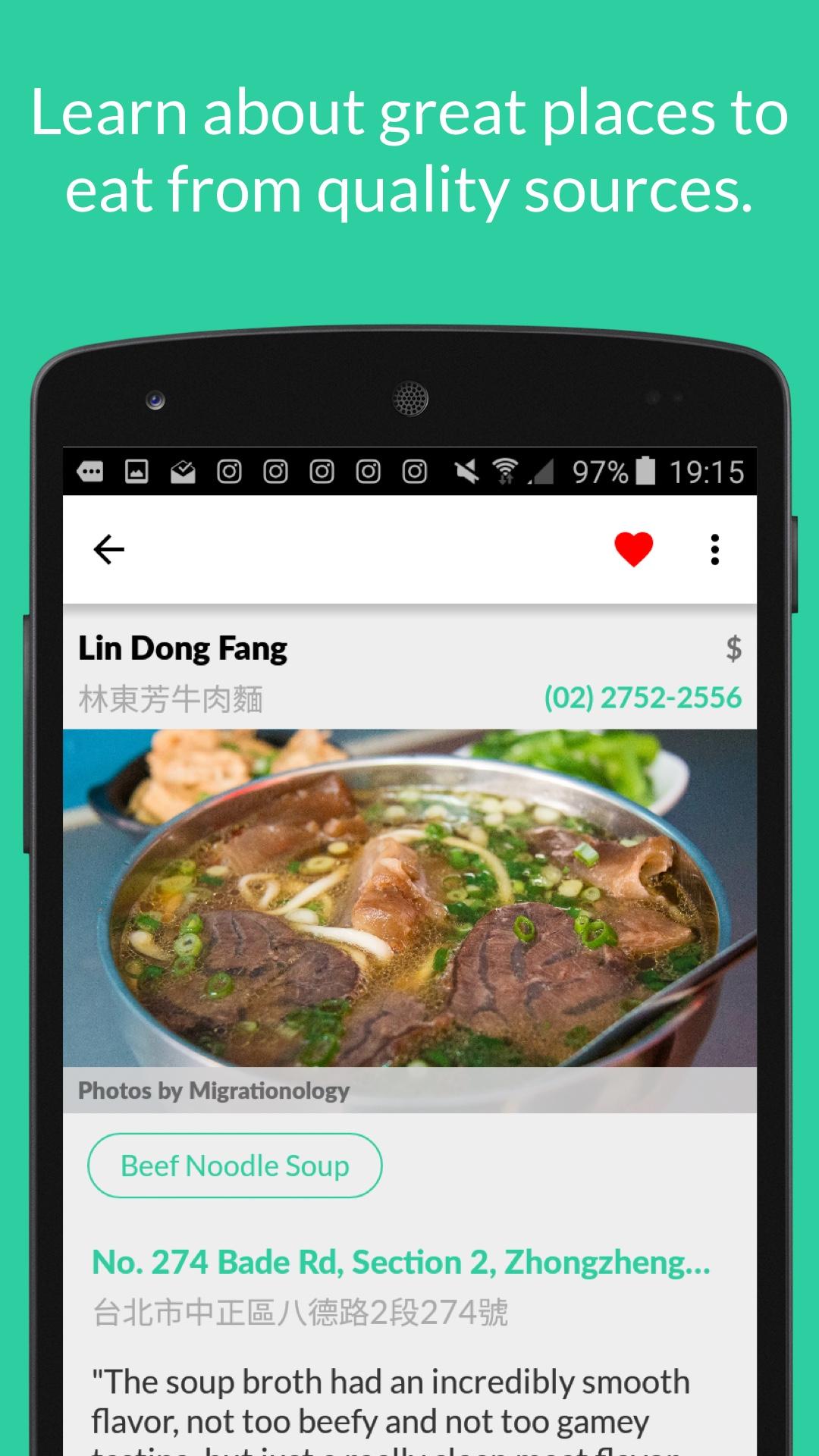 Eat Drink Taiwan (Package Name: com.kevinwolkober.eatdrinktaiwan) is developed by Kevin Wolkober and the latest version of Eat Drink Taiwan 1.0.3 was updated on November 25, 2016. Eat Drink Taiwan is in the category of Travel & Local. You can check all apps from the developer of Eat Drink Taiwan and find 92 alternative apps to Eat Drink Taiwan on Android. Currently this app is for free. This app can be downloaded on Android 4.4+ on APKFab or Google Play. All APK/XAPK files on APKFab.com are original and 100% safe with fast download.