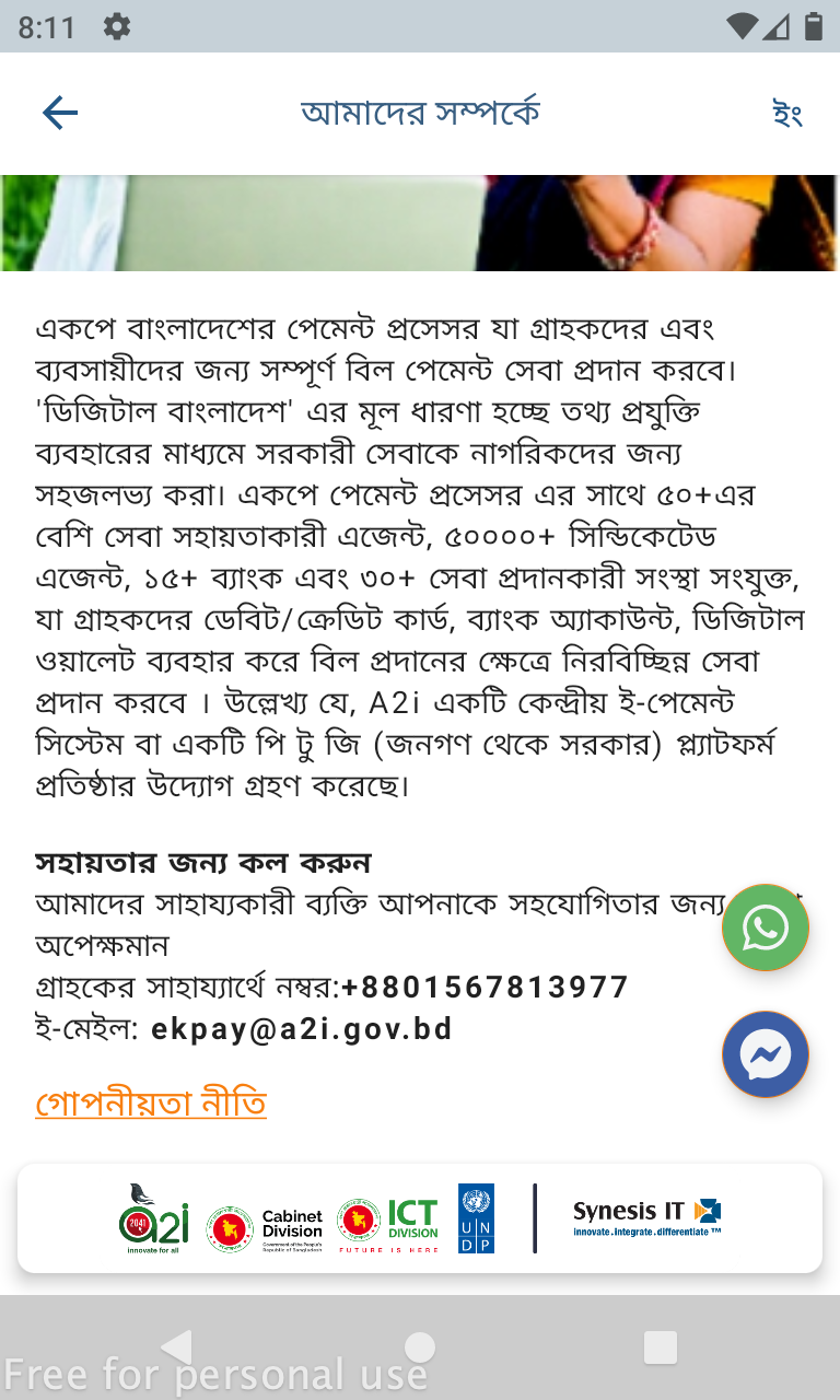 EkPay (Package Name: bd.com.synesisit.ekpay) is developed by Aspire to Innovate and the latest version of EkPay 1.1.1 was updated on July 2, 2022. EkPay is in the category of Tools. You can check all apps from the developer of EkPay. Currently this app is for free. This app can be downloaded on Android 5.0+ on APKFab or Google Play. All APK/XAPK files on APKFab.com are original and 100% safe with fast download.