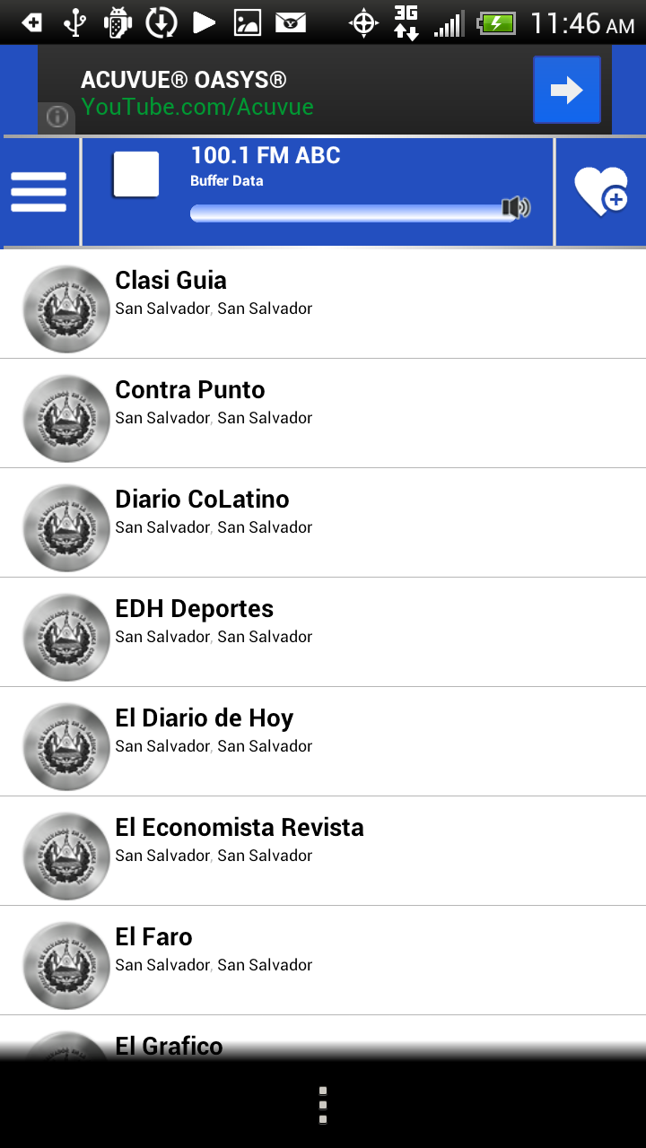 In this free app you will be able to listen to all radio stations, read all the news papers, and watch all the Tv channels from El Salvador! all in one convenient application!, if one radio stations does not play send us and email from inside the app and we will update it live as soon as possible. Our Radio Player is fast and reliable works great and plays a lot of different stream formats!, (plays great in HTC, Samsung Galaxy devices and a lot more.) The app connects to our server every time is turn on to download the latest url streams for all the radios news papers or Tv channels. The app requires Internet all the time. The application intercepts or identifies incoming or outgoing calls to stop and restart the radio player. The application uses your memory card to store your favorites list. You can save any radio, news paper or Tv channel to your favorites list so you can access it faster! For a complete list on Radios, News Papers and Tv channels in this app go to http://elsalvador.guiasitio.com/