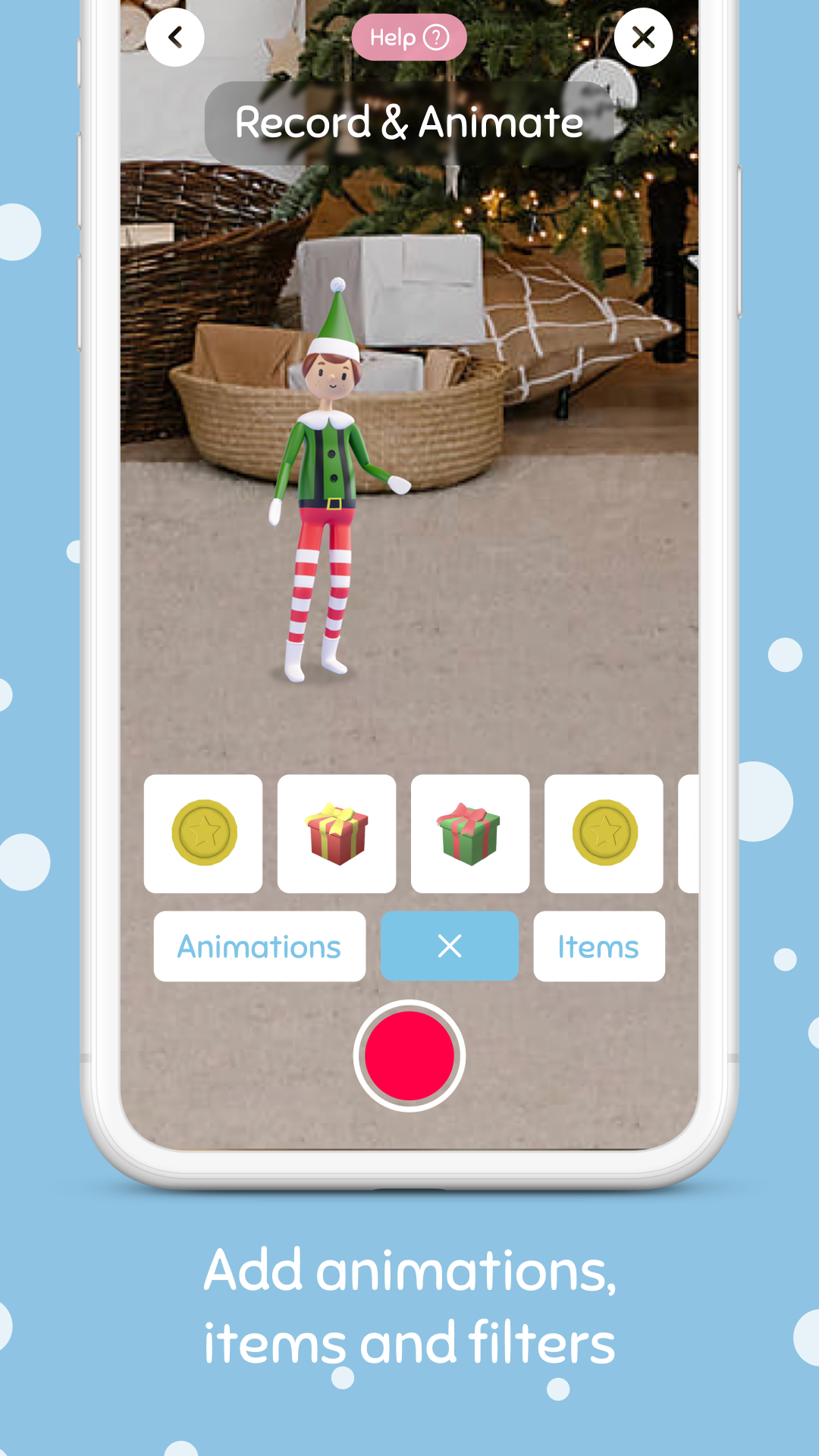 Design your own elf, pick a route and let your Elf run wild around your home. Catch it on camera and watch the delight of your children when you show them the magic.