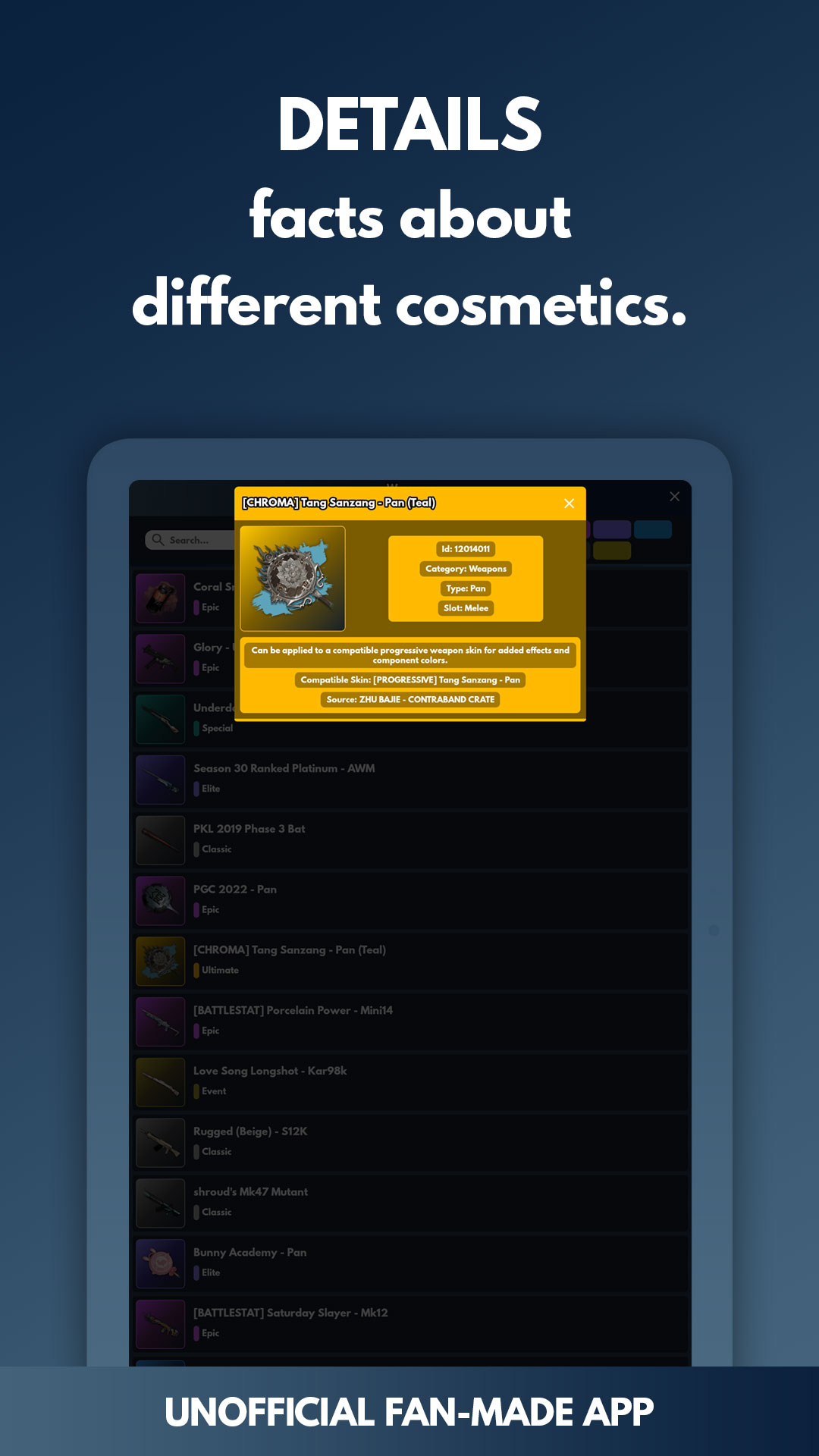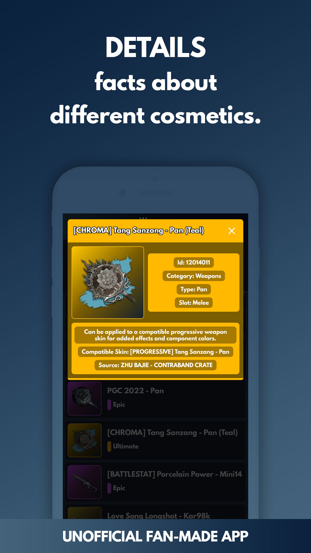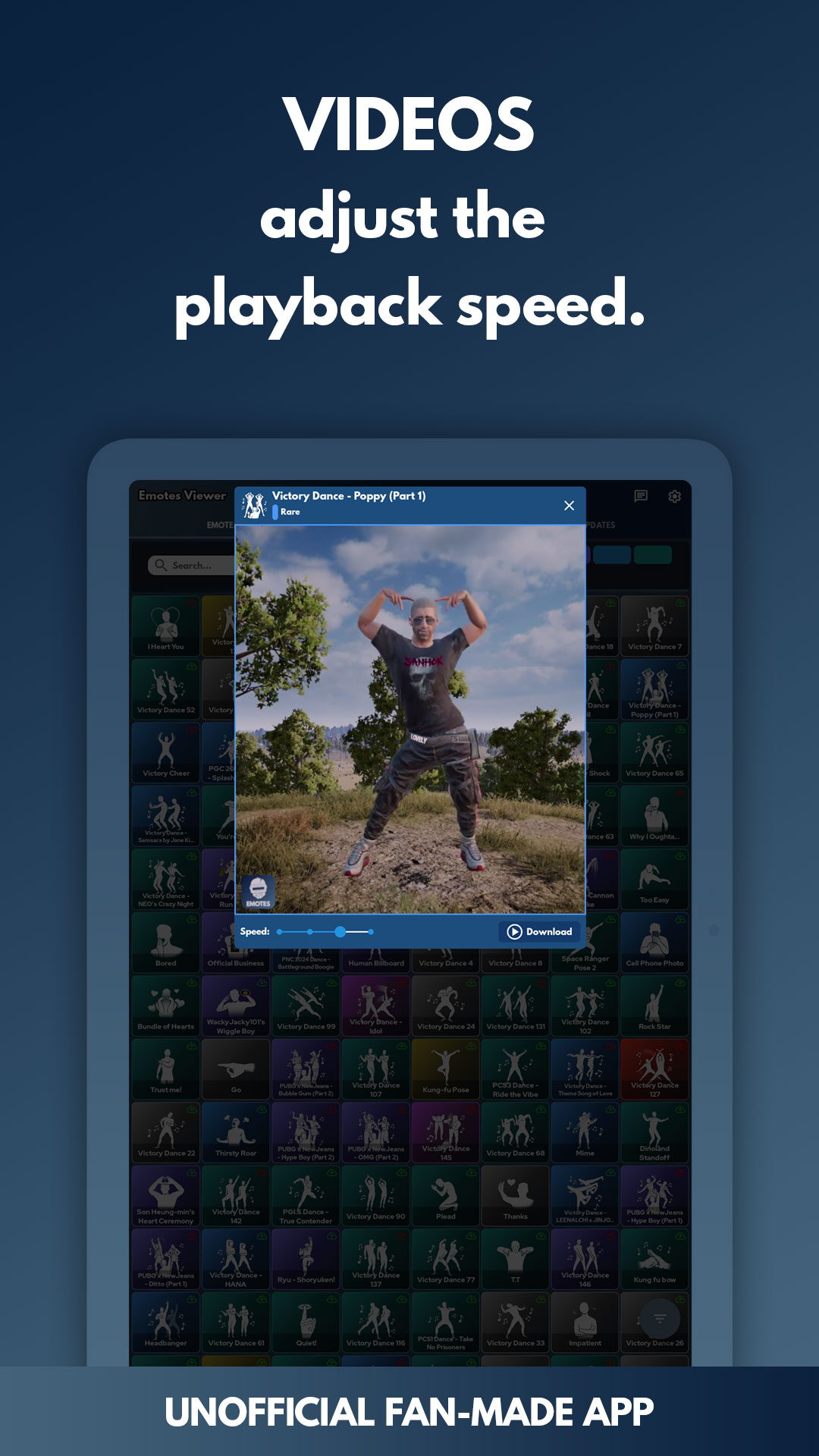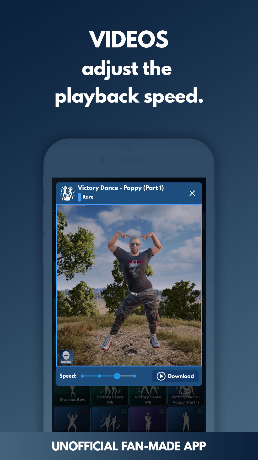 Unlock your ultimate PUBG style! 💎 Tired of guessing what a new emote or mythic outfit truly looks like in PUBG Mobile or BGMI? Imagine previewing every legendary skin and dance BEFORE spending your precious G-Coin or UC. Stop wasting your currency on surprises! Welcome to the essential PUBG companion app, your definitive toolkit and database for PUBG Mobile and Battlegrounds Mobile India. Master every cosmetic, from elusive emotes to game-changing weapon skins, and refine your unique style to secure that coveted Winner Winner Chicken Dinner! 🏆 💃 Master Every PUBG Emote & Dance Dive into the most comprehensive PUBG emote viewer and dance viewer ever created! Our constantly updated library features every single one of the latest PUBG Royale Pass emotes, rare event dances, and classic gestures from PUBG Mobile and BGMI. Experience our advanced 3D viewer to slow down moves, analyze every detail, and perfect your victory celebration. Explore the entire PUBG emote collection for free! 👕 Preview ALL PUBG Skins & Cosmetics Your ultimate PUBG skin viewer is here! Go beyond emotes and explore every aspect of PUBG character customization with unparalleled detail. * 🔫 Legendary PUBG Weapon Skins: Inspect every curve and glow of your favorite gun skins, from the newest releases to the rarest finds from the Mythic Forge and beyond. See how they truly look before you buy! * 🎒 Epic PUBG Outfits & Armor: Browse thousands of stunning outfits, tactical helmets, and stylish backpacks for PUBG Mobile and BGMI. * 🚗 Dazzling PUBG Vehicles & Gear: Check out every vehicle skin, parachute design, and other unique items. Our item viewer lets you visualize everything in your potential PUBG collection. 🧠 Your Ultimate PUBG Knowledge Hub This app transcends a mere PUBG cosmetics gallery; it's your strategic command center for all PUBG battlegrounds intelligence! * 📈 PUBG Update Tracker: Be the first to know what's new in PUBG Mobile! Get a direct feed of all current and past game updates, ensuring you're always ahead of the curve without even launching the game. * 📚 Complete PUBG Database: Quickly find and preview any PUBG cosmetic item from any season, making it the most comprehensive PUBG item database at your fingertips. * ✨ Always Current: We tirelessly track the latest PUBG updates, crates, events, and seasons to ensure your information is always fresh and accurate. Stop wasting time with unreliable online sources! Your definitive PUBG Mobile emotes list, BGMI skin database, and PUBG update tracker are all right here, packed into one powerful app. Whether you're a fresh recruit or a seasoned PUBG veteran, this is the essential companion you can't play without. 🚀 Download Emotes Viewer for PUBG (BGMI) now and claim your ultimate advantage on the battlegrounds! --- Disclaimer: This is an unofficial, fan-made application and is not affiliated with, endorsed, sponsored, or specifically approved by PUBG Studios or KRAFTON. This app adheres to the Player-Created Content Policy. Portions of the materials used are trademarks and/or copyrighted works of PUBG Studios. All rights reserved by PUBG™. For more information, please see the PUBG Player-Created Content Policy.