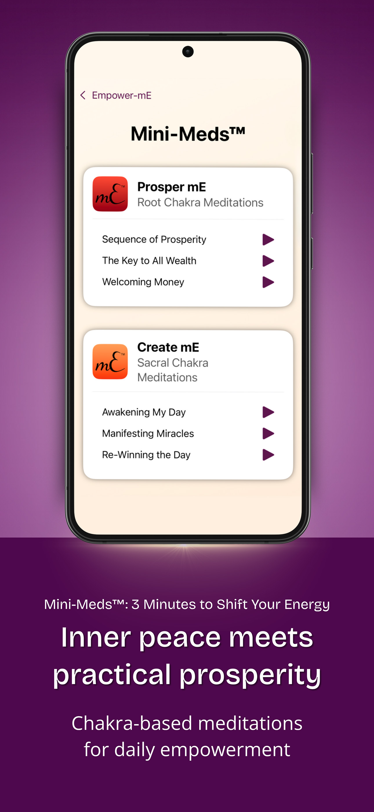Empower-mE is an award-winning intuitive app designed to guide you through emotional healing, daily clarity, and energetic alignment—quickly, powerfully, and soulfully. This one-of-a-kind app brings you breakthrough spiritual tools at your fingertips. 🔮 Key Features: 🌀 Shake for Intuitive Answers Receive soul-guided insight instantly. Whether you're navigating grief, seeking direction, or simply needing peace, select a category and shake your phone. Your guidance appears exactly when you need it. 🧘 3-Minute Mini Meds™ Too busy to meditate? These short, visually guided meditations help you center, breathe, and realign in under three minutes—without stress. 👋 Free mE EFT® Tapping Emotional Freedom Technique sessions help you process stuck emotions and rewire limiting beliefs—anywhere, anytime. 😂 My Solution – Laughter into Theta Innovative and playful: use laughter to shift your brain into theta and unlock intuitive creativity, joy, and freedom amidst daily problems. 💸 Prosperity Tools + Money Laws Use the laws of abundance to heal your relationship with money and open the flow of divine prosperity in your life. 🌟 What Makes Empower‑mE Different? This is more than a mindfulness app. Empower‑mE blends: Science + Spirituality Intuition + Action Healing + Empowerment Whether you need answers, alignment, emotional release, or daily spiritual practice, Empower‑mE becomes your personal guide. 📲 Perfect for You If You Want To: ✔️ Heal anxiety, grief, or inner conflict ✔️ Boost your energy and emotional resilience ✔️ Connect to divine answers and inner peace ✔️ Rewire your beliefs and raise your worth ✔️ Receive fast, aligned support each day Thousands are already using Empower-mE to reset their energy, elevate their lives, and awaken their true selves. Now it’s your turn. Download Empower‑mE and step into the healing, abundance, and divine alignment that’s waiting for you.