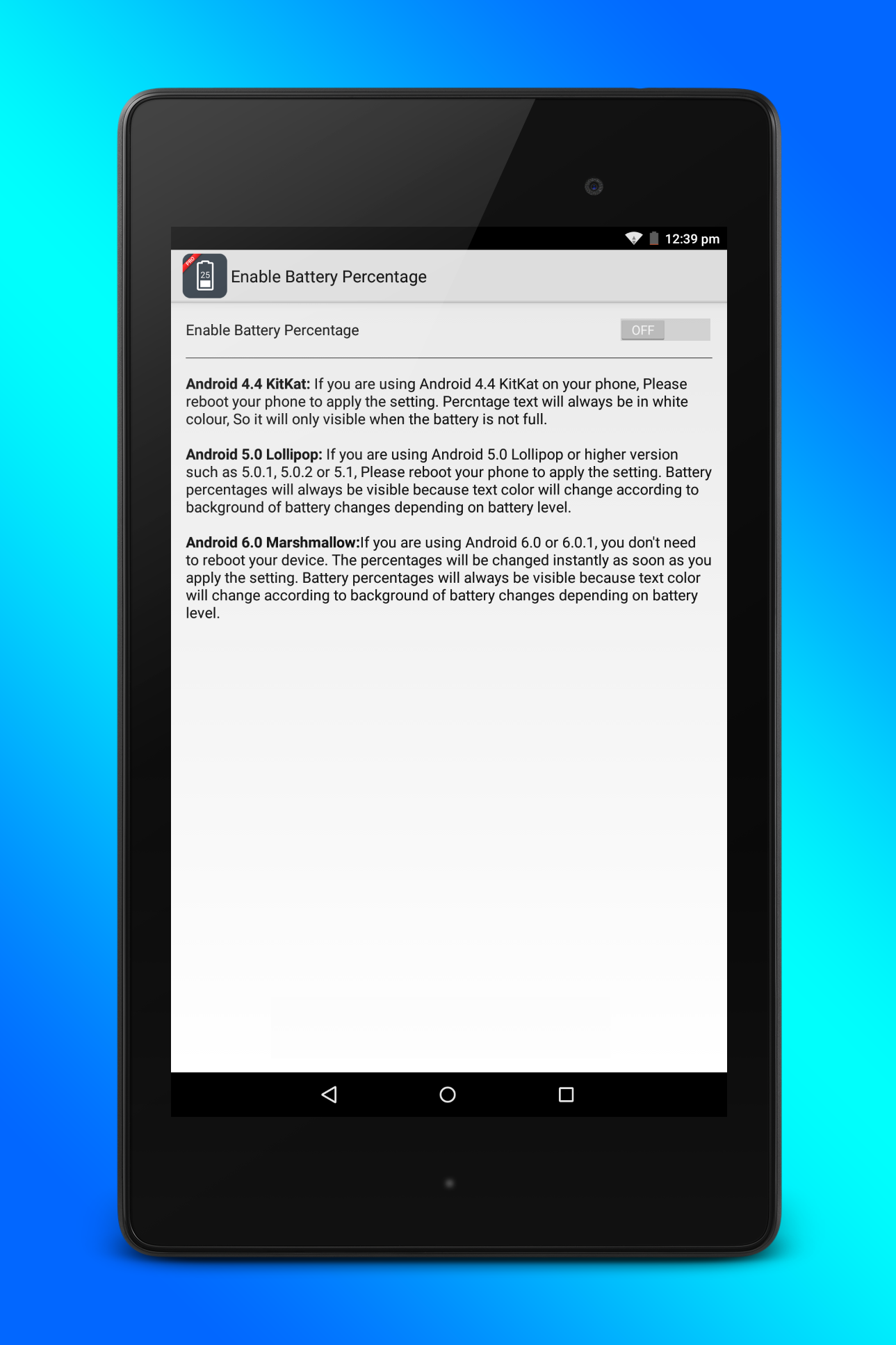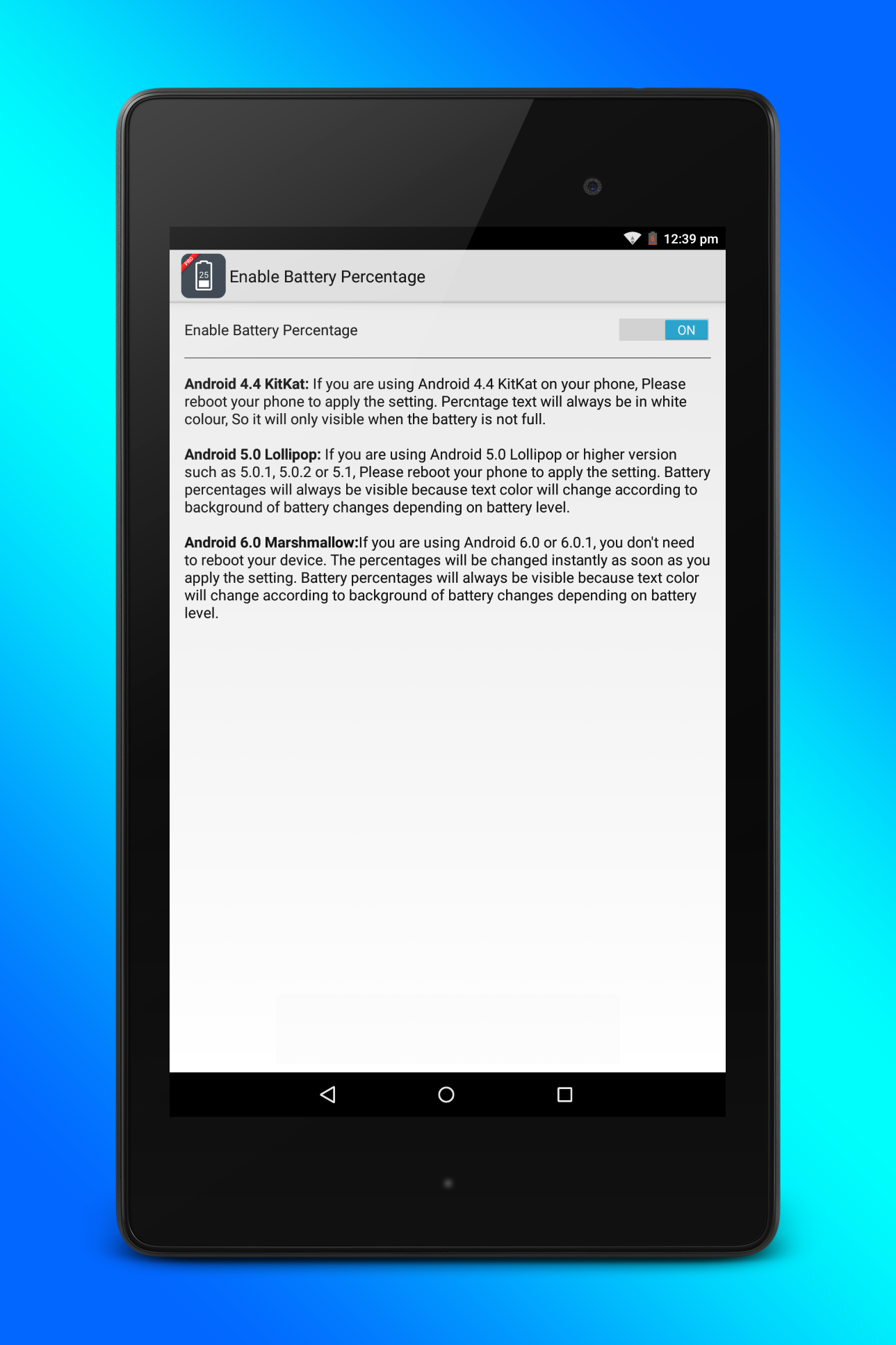 Enable Battery Percentage