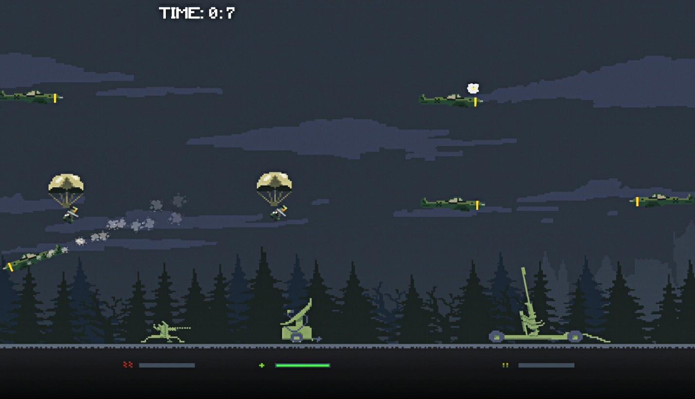 Get full version here: https://play.google.com/store/apps/details?id=com.ninjagames.endlessaa Endless AA (Anti Aircraft) is a retro arcade shooter where you are in charge of defending a radar station against endless waves of enemy aircraft. The Battle of Britain played a very crucial role in WWII and these radar stations helped Britain win by letting fighter command know the position and heading of enemy bombers in advance. In this arcade game you control two anti-aircraft guns and shoot down various Nazi aircraft ranging from stukas to heavy Ju88 Bombers. The game features fast paced action with accurate controls paired with retro pixel art graphics and particle effects. Features: 2D Retro Arcade Shooter Endless Arcade Fun Pixel Graphics Accurate Controls Particle Effects