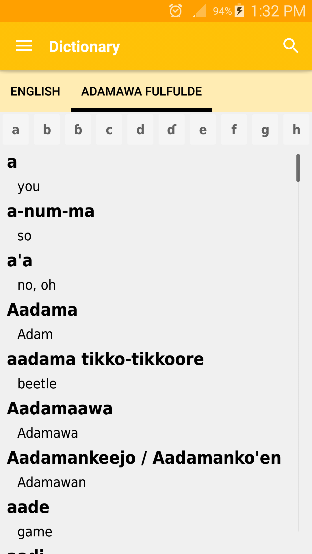 English – Fulfulde Dictionary