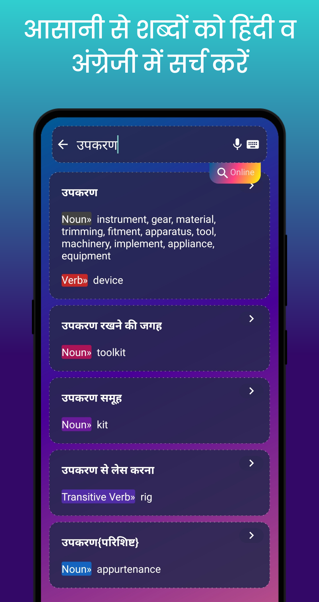 FEATURES:- ☀☀This English Hindi Dictionary is offline.