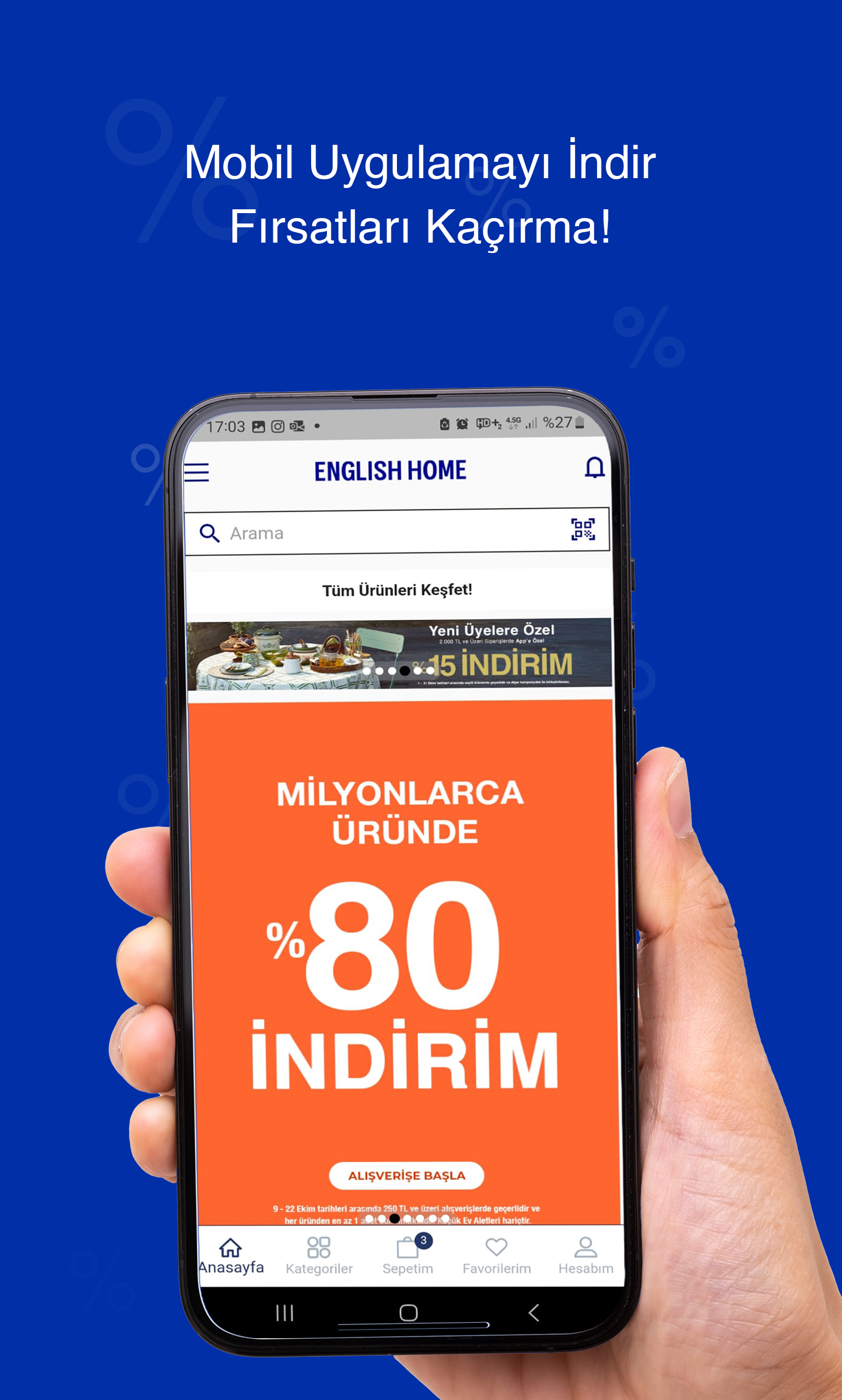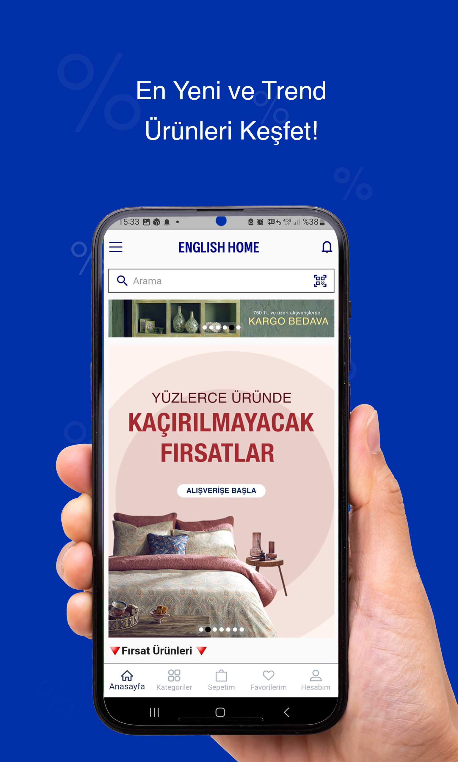 English Home (Package Name: tr.com.englishhome) is developed by ENGLISH HOME TÜRKİYE and the latest version of English Home: Ev & Alışveriş 5.3.6 was updated on January 10, 2026. English Home: Ev & Alışveriş is in the category of Shopping. You can check all apps from the developer of English Home: Ev & Alışveriş. Currently this app is for free. This app can be downloaded on Android 9.0+ on APKFab or Google Play. All APK/XAPK files on APKFab.com are original and 100% safe with fast download.