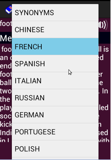If You are connected to internet then You can search details about a word in Google and Wikipedia.