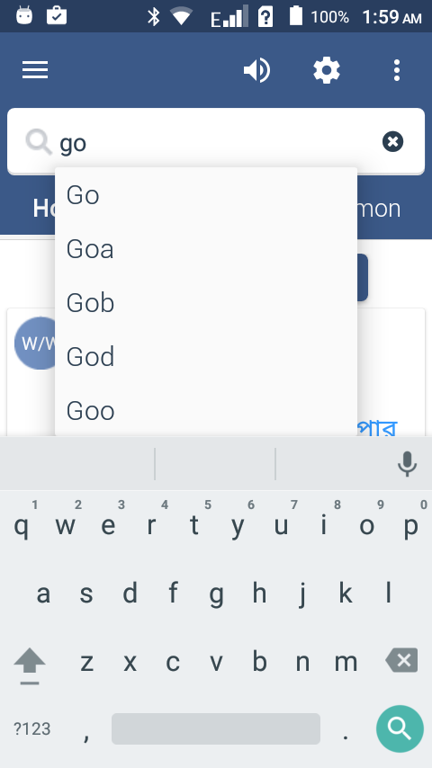 This Bangla Dictionary has the facility of searching both from English to Bangla and Bangla to English. Relevant and important words are listed and synced with search that gives advantage of a word book of Bangla and English. Search History, Store Favorite , Display Word Of the Day. List of Synonyms and Antonyms with details English description. Searching words through voice, Pronunciation of English, Detecting typed language automatically. How to use some main features Instant Scanning features: At first you have to enable instant scanning from display settings or home screen , During using browser or any other application please select the word or words and then press copy. You will see instant meaning of this word without opening dictionary. English Grammar: We provide some important grammar chapter like tense , sentence , voice narration etc. Word Quiz: Our quiz have 24 level, You have to complete one by one. For wrong answer you will be asked again on the end of the level. Mixer MCQ: This is like real exam. You can change number of question and question type also. Word Category: We divide important word into 60 categories.You will find it from drawer. You can change category position by dragging.We include verbs, idioms and phrases section. Backup & Restore: You can take backup and your favorite and history word in sdcard.and can restore it later. How to set Live Wallpaper: From left drawer please click live wallpaper option and you will see word with meaning on your home screen. You can customize this wallpaper screen. you can change color, font size and also position of word. Quotes: We provide a lot of quotes that can change your life.