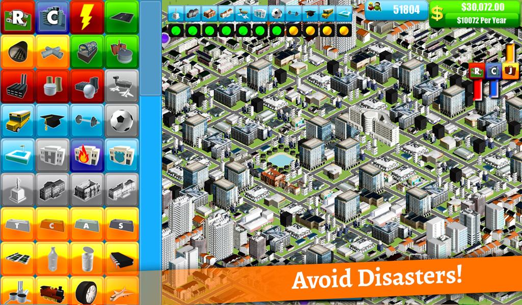 Advanced City Builder game! Main Features: -Random Map generation -Disasters -Elevated terrain and lakes -Huge map! Larger then any Sim City Game -Subways -Plumping -Bus stops -Pools -Schools -Airports -Hospitals -Police and fire departments -City Budgets and Ordinances! Much Much more.