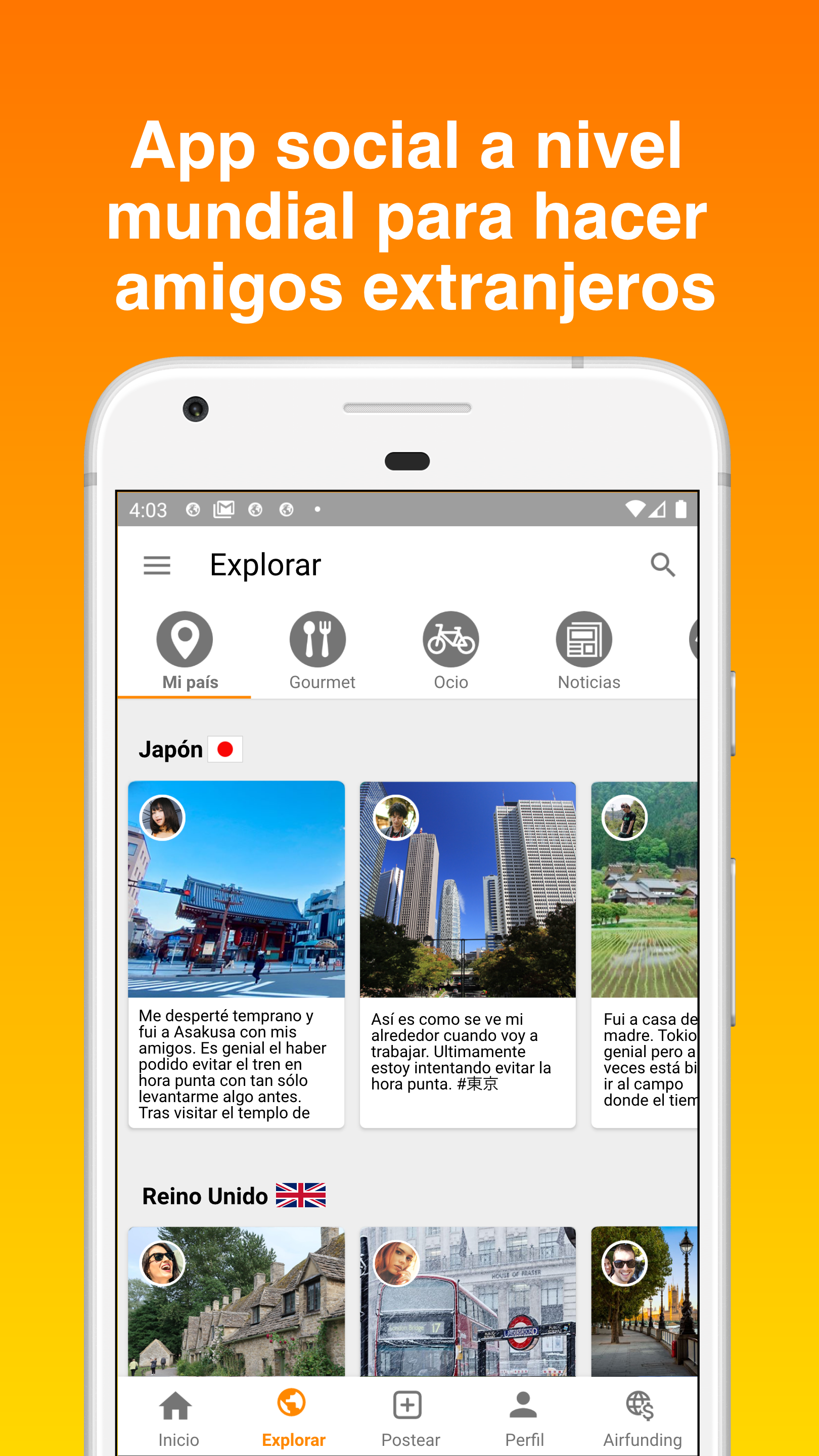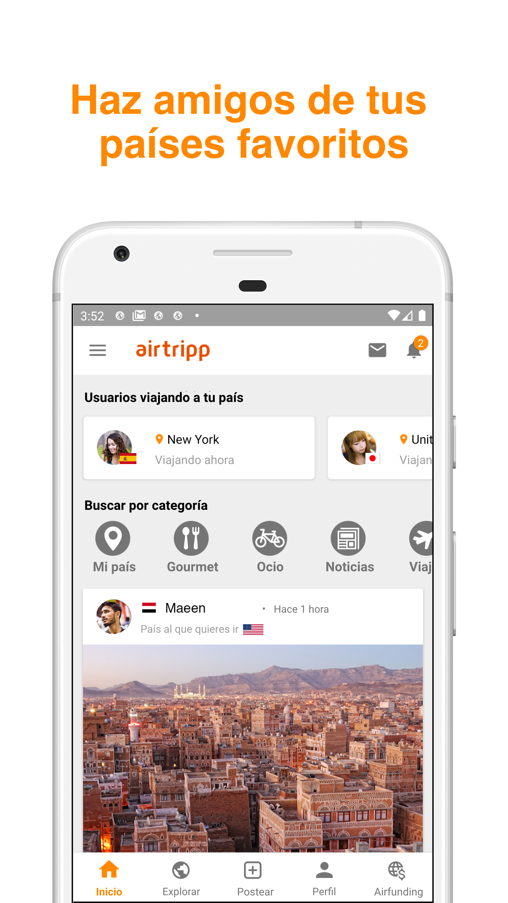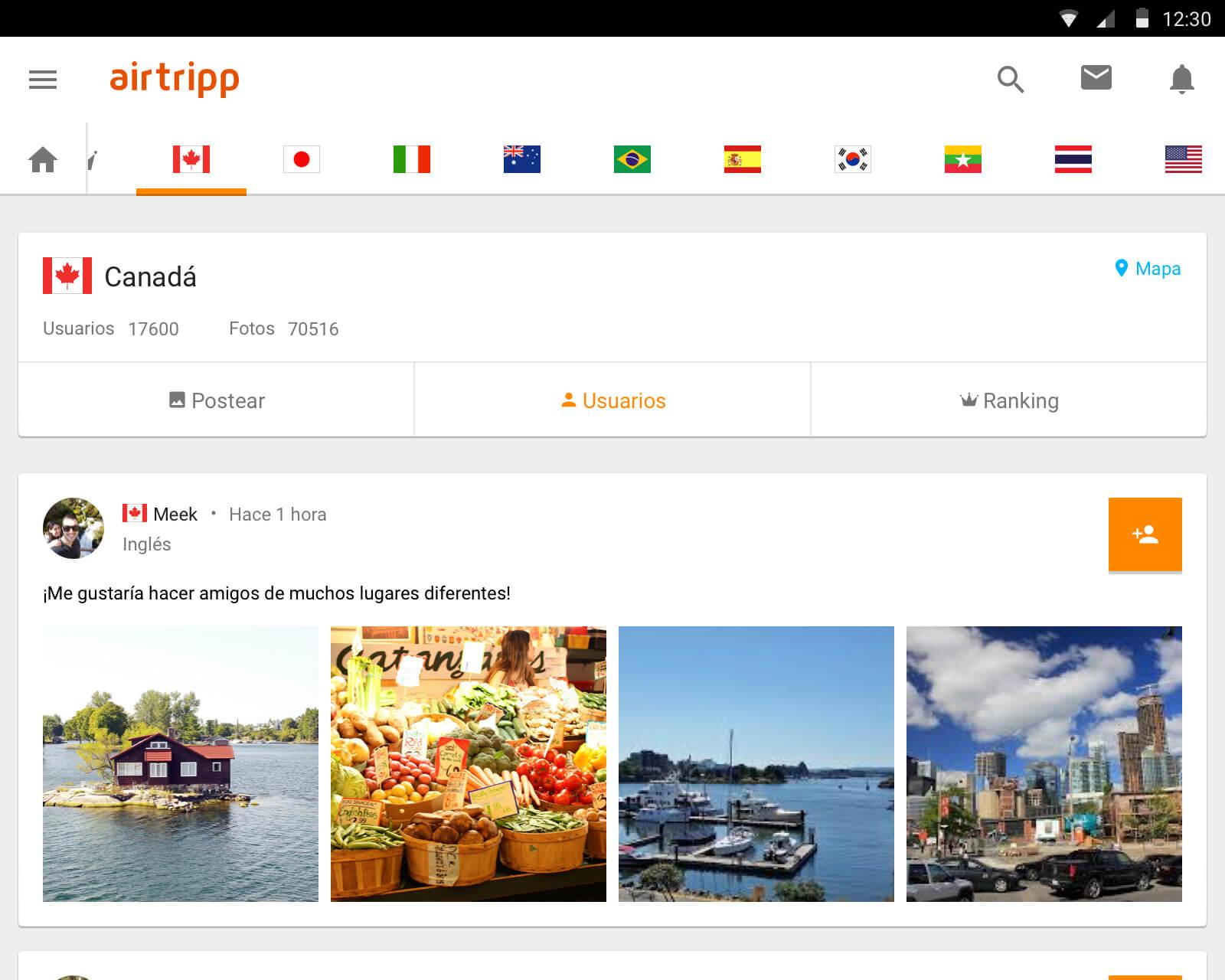 Airtripp es una red social con la que puedes conectar con personas de países a los que te gustaría viajar mediante fotografías. ¡Mediante la traducción automática harás amigos fácilmente con usuarios de más de 250 países y regiones sin tener que preocuparse por el idioma!
