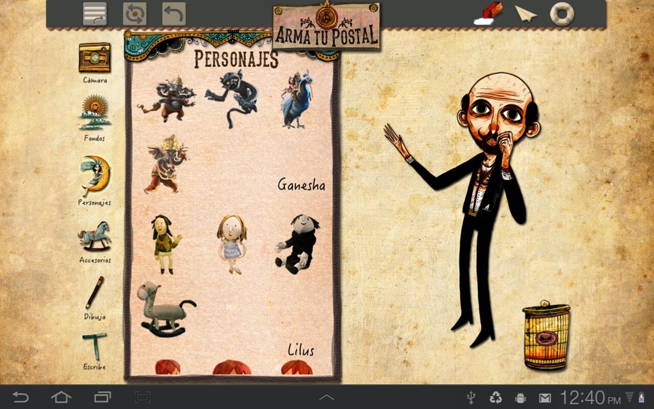 Arma Postal es una aplicación con la podrás crear y compartir postales con personajes y escenarios de las historias de imaginantes* niños. Coloca fondos en el lienzo para cambiar al escenario al más te guste, según tus historias preferidas de imaginantes* niños. Añade personajes al lienzo para editar tu postal, arrástralos al basurero para eliminarlos. Coloca palabras sobre el lienzo para agregar mensajes. Podrás eliminarlos arrojándolos al basurero. Dibuja a mano alzada sobre el lienzo trazos de diferentes colores para añadir más detalles a tu postal. Podrás borrarlos cuando quieras con ayuda de la goma. Sube fotografías desde tu cámara o dispositivo a tu postal y recórtalas para colocarlas en situaciones divertidas, si no te gustaron podrás arrojarlas al basurero. Si deseas volver a comenzar tu postal podrás limpiar tu lienzo y comenzar desde el principio. Guarda el estado de tu postal para no perder el avance y vuelve a cargarla cuando quieras. Manda tu postal por mail a tus amigos o guárdala dentro de tu dispositivo cuando termines tu postal.