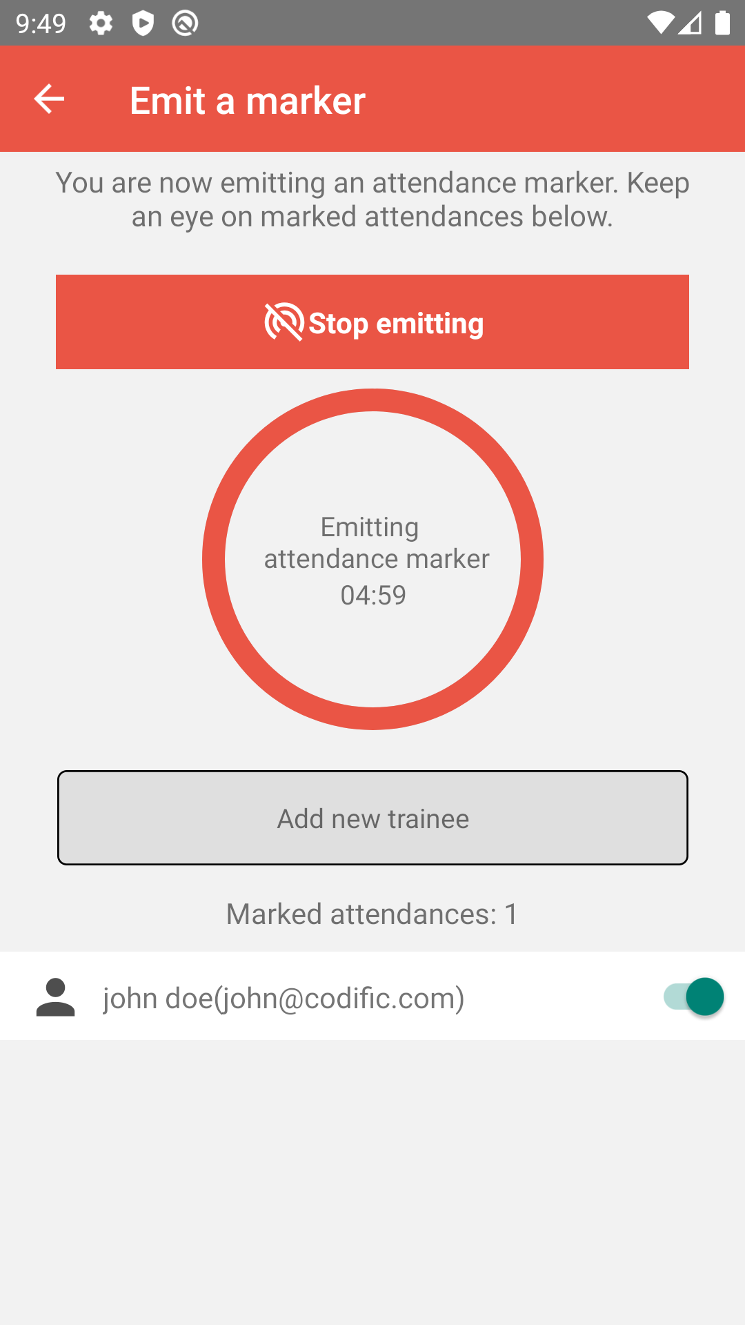 Attendance Radar es la forma más eficiente, confiable y sencilla de realizar un seguimiento de la asistencia. Ya sea para clases, eventos o seminarios, Attendance Radar lo hace todo. La aplicación utiliza una señal Bluetooth oculta que es compatible con todos los teléfonos inteligentes, lo que permite realizar un seguimiento de la asistencia prácticamente instantáneo con sólo un par de clics.