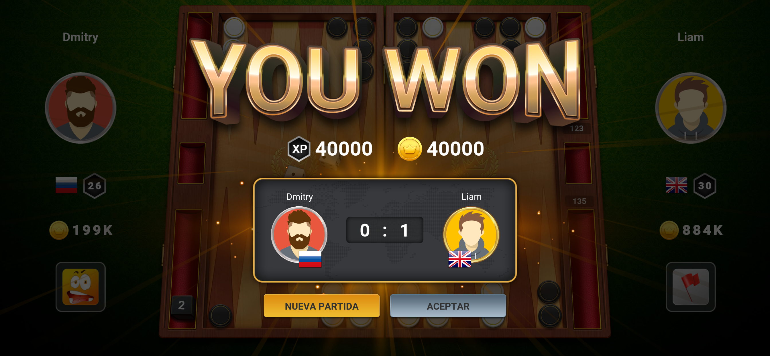 Backgammon Champs! Si te encanta jugar Backgammon en vivo y competir con jugadores de todo el mundo, ¡has venido al lugar correcto! Backgammon es uno de los juegos de mesa más antiguos que se conocen y uno de los juegos en línea para 2 jugadores más populares del mundo. El juego en línea Backgammon pondrá a prueba tu mente y tu capacidad de juego. ¡Juega hoy!
