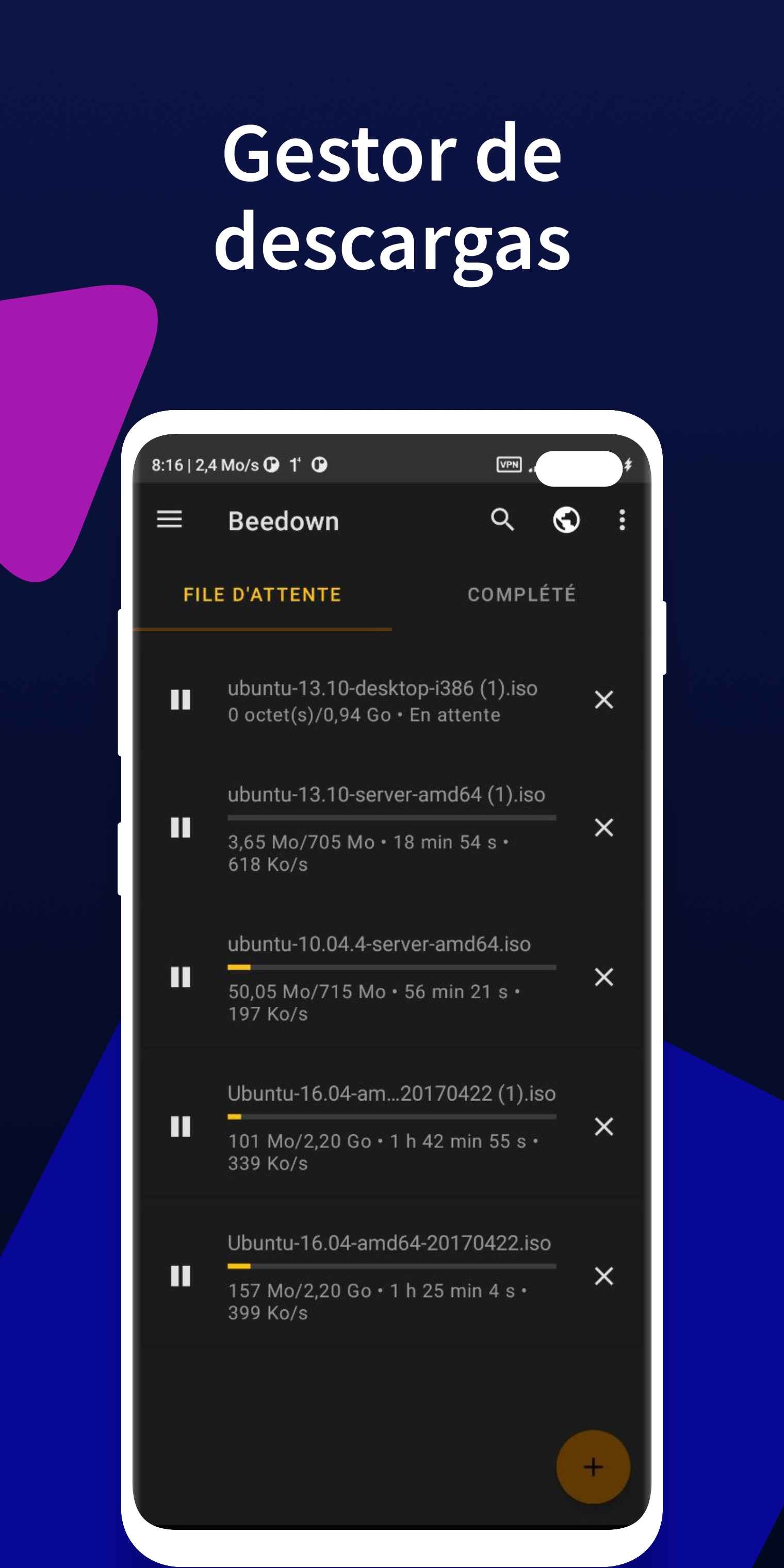 Beedown, un administrador de descargas ligero, rápido, seguro y muy fácil de usar, integra un navegador que le permite descargar videos y archivos de todos los formatos desde Internet, no necesita iniciar sesión en una cuenta o registrarse para iniciar una descarga. en internet de una manera rápida, segura y eficiente.