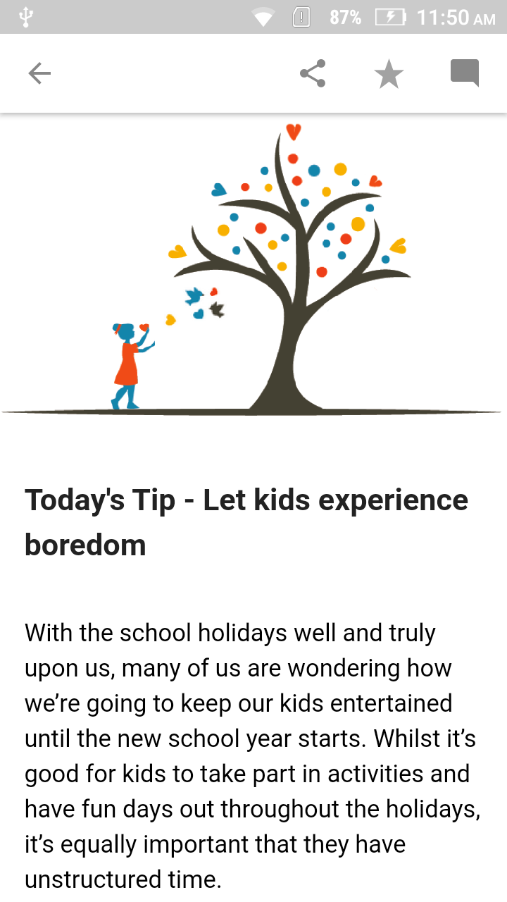 This revolutionary app is designed to tackle most parenting challenges effectively and to create a more enjoyable and less stressful family life. It offers easy to use tools and weekly tips selected from the best parenting methods worldwide. Fulfil your children's potential, and SAVE UP TO 1 HOUR PER DAY by significantly reducing power struggles! Do you experience typical parenting challenges such as: lack of cooperation, whining, tantrums, defiance and back talk, sibling rivalry, mealtime, bedtime, morning or school issues? This app will give you tips to solve all these issues and more by: • Trouble-shooting daily challenges as they occur: over 500 tips and ideas to effectively deal with typical parenting issues now and in the future. • Fulfilling your children’s potential: by giving you nformation and guidance on your children’s needs, combined with weekly tips and inspirational quotes, to give you a solid foundation for raising confident, self-disciplined and happy children. The Best of Parenting app is written and compiled by Carole and Nadim Saad; parents of three, with many years experience in parent coaching, early-years teaching and child development. Having experienced the typical parenting challenges for themselves the couple researched the latest evidence from child psychologists, neuroscientists and education experts to discover the secrets to the world’s most effective parenting methods. What they uncovered was so life changing that they decided to dedicate their life to turning this information into useful tools for every parent or carer to help them on their parenting journey. Within this app the couple share their own insights and experiences as an additional means of offering reassurance, empowerment and more confidence to all parents and children’s carers. Key features: • Solutions to over 100 common parenting challenges • Weekly tips and inspiring quotes for parents • Useful insights into why parenting challenges occur and how to deal with them when they do • Step by step tools to solving common problems • How-to guide for developing your own strengths as a parent • How-to guide for developing your children’s strengths • Highlighted links for exploring each tool at greater length • Handy links to Best of Parenting website offering further suggestions and articles. When downloading the app, remember to “Allow” push notifications as this is how your weekly parenting tips and inspirational quotes are delivered. We would like to give credit to all the inspiring people who’ve dedicated their lives to improving parenting and child development all over the world, and without whom creating his app would not have been possible: such as Jane Nelsen of Positive Discipline, Jim and Charles Fay of Love and Logic, Alfie Kohn, Daniel Siegel, John Gottman, Adele Faber and Elaine Mazlish, Haim Ginott, Rudolf Dreikurs, Alfred Adler, Maria Montessori and many more!