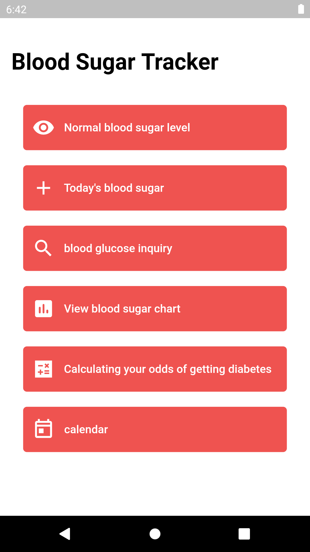 La aplicación de verificación de registro de gestión de azúcar en la sangre es una aplicación que los pacientes diabéticos pueden usar para administrar su azúcar en la sangre. La diabetes Mellitus requiere administrar el azúcar en la sangre de ayuno y el azúcar en la sangre posprandial para prevenir los picos de azúcar en la sangre. Para hacer eso, debe saber qué alimentos causan que su azúcar en la sangre se pique. Para comprobar esto, debe grabar su azúcar en la sangre. La aplicación de gestión de azúcar en la sangre visualiza las estadísticas de azúcar en la sangre registrada y lo muestra como un gráfico. Así que puedo verificar los cambios de azúcar en la sangre de un vistazo. Y puede calcular la probabilidad de que tenga la diabetes en el futuro entre las personas con pre-diabetes o el público en general. La aplicación de verificación de registro de gestión de azúcar en la sangre que contiene varias funciones será útil para aquellos que han sido diagnosticados con diabetes o aquellos que desean prevenirlo.