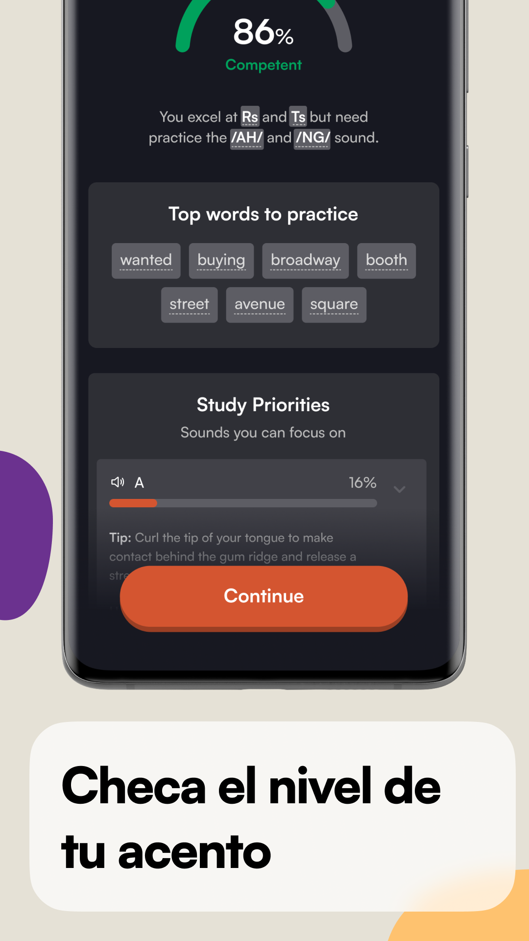 > Obtén puntaje inmediato sobre tu acento