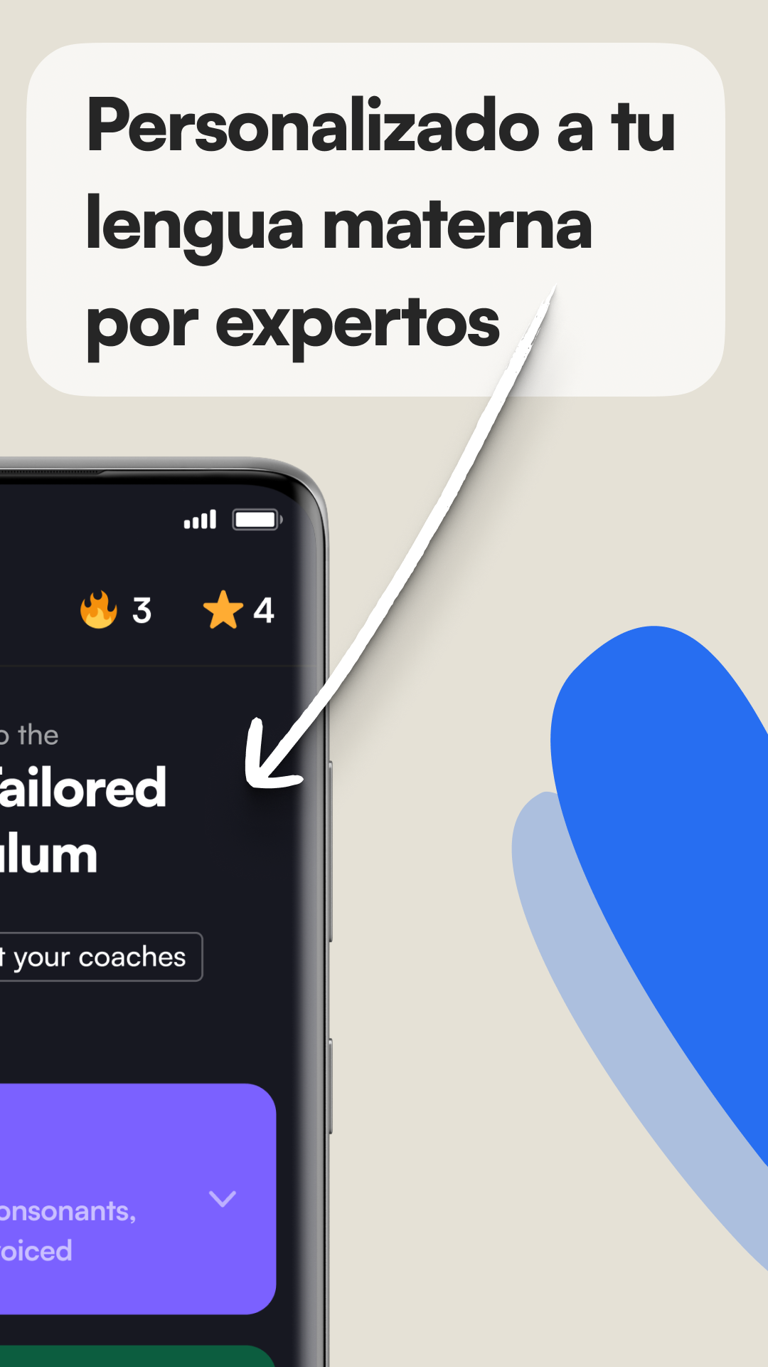 Nuestro curso se personaliza automáticamente dependiendo de tu lengua materna. Las lecciones se centrarán en los aspectos de pronunciación estadounidense que son más difíciles para las personas que hablan español.