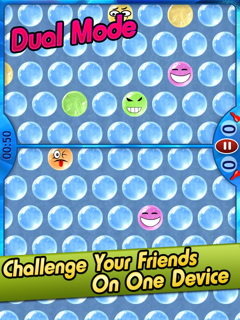 Allows you to pop as many bubbles as you can to earn points in 2 minutes, while avoiding the dreaded skull. Plus get bonus seconds and points by finding the key and popping certain bubbles. You have to be quick, since the bubbles will refill.