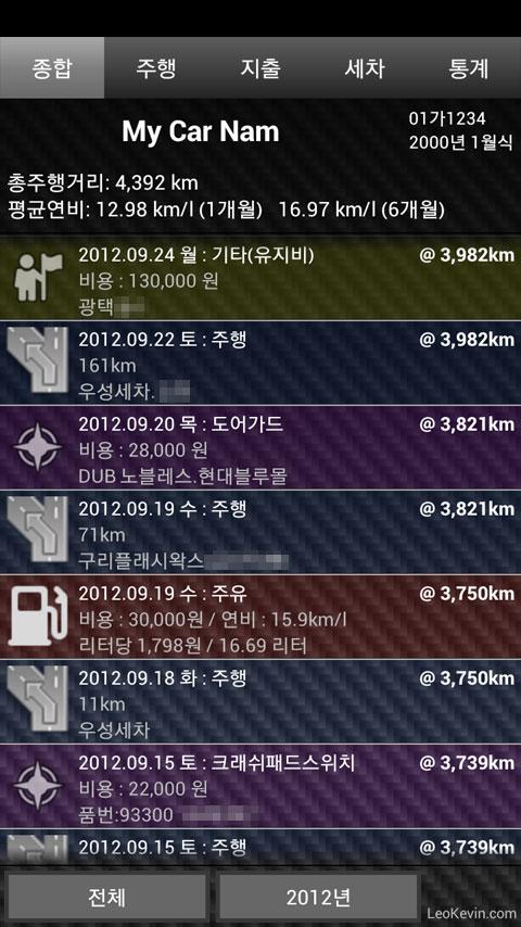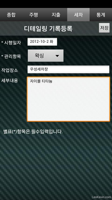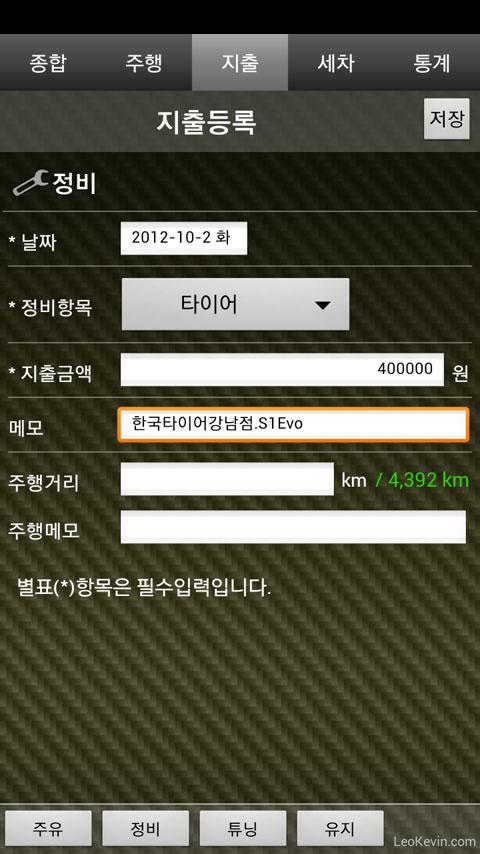 자동차와 관련된 모든 기록을 저장할 수 있는 차계부입니다. 일자별 운행기록, 정비기록, 비용기록, 디테일링(세차)기록을 할 수 있고, 리스트 내역과 통계 그래프를 볼 수 있습니다. 저장한 기록들은 엑셀파일로 백업하고 불러오기를 할 수 있으며, 실시간으로 백업서버와 동기화 할 수 있어서 폰분실, 파손시에도 자료를 보존할 수 있습니다. --> 상세기능소개 <-- * 여러대의 차량을 관리할 수 있습니다. * 정비항목을 설정하고, 점검시기에 알림표시를 해줍니다. * 주행기록만 별도로 저장할 수 있어서, 지출이 없더라도 운행기록을 할 수 있습니다. * 튜닝기록, 세차기록 등 신세대 자동차 매니아를 위한 메뉴가 있습니다. * 모든 기록은 첨부사진을 등록할 수 있어, 기록에 도움이 됩니다. ---- 개발자 연락처 : 07040244708
