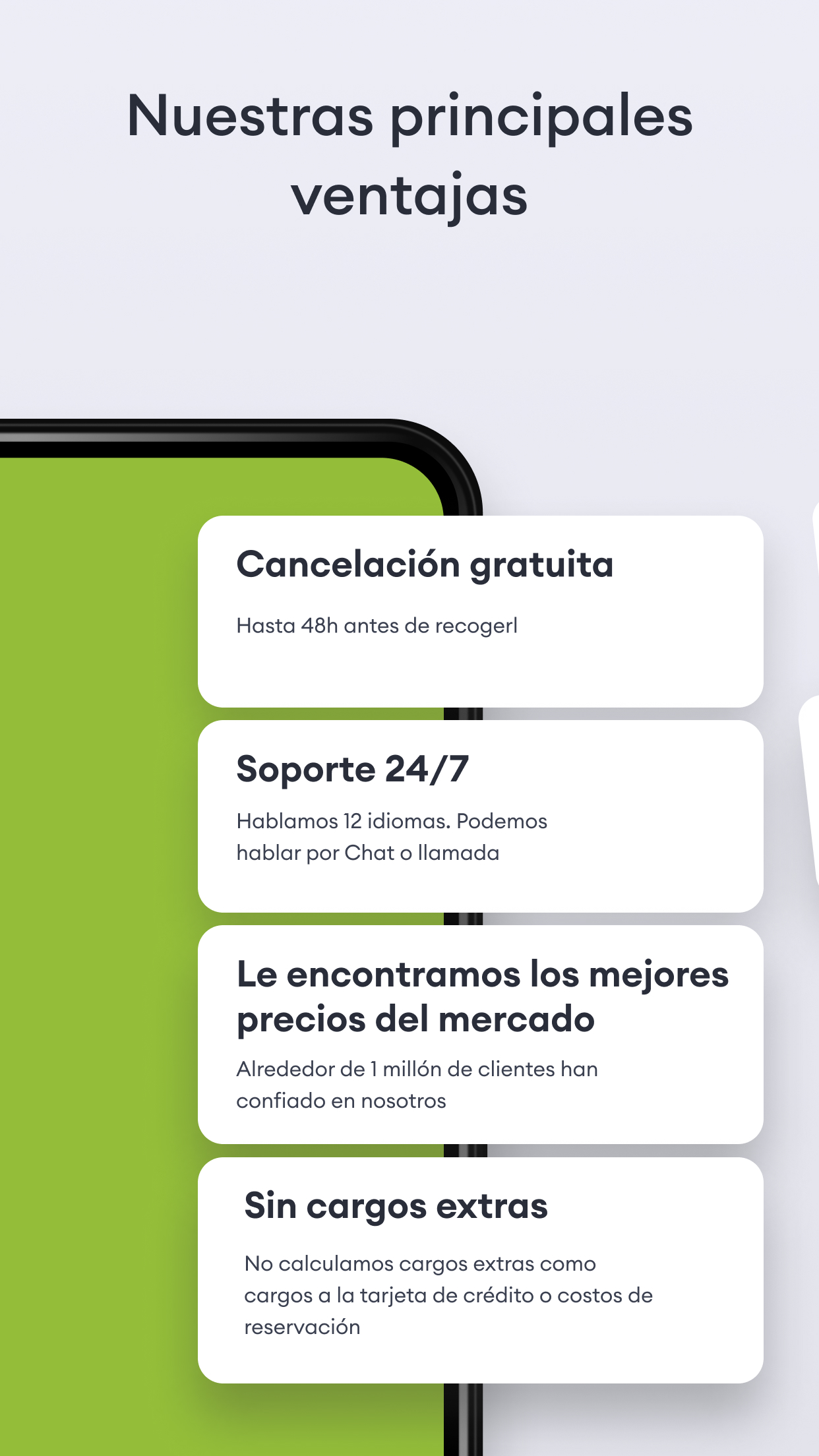 👍 Rentar un auto a través de nuestra aplicación es muy rápido y fácil. El proceso de reservación toma menos de 3 minutos. La mayoría de las opciones son confirmadas en línea de forma instantánea.