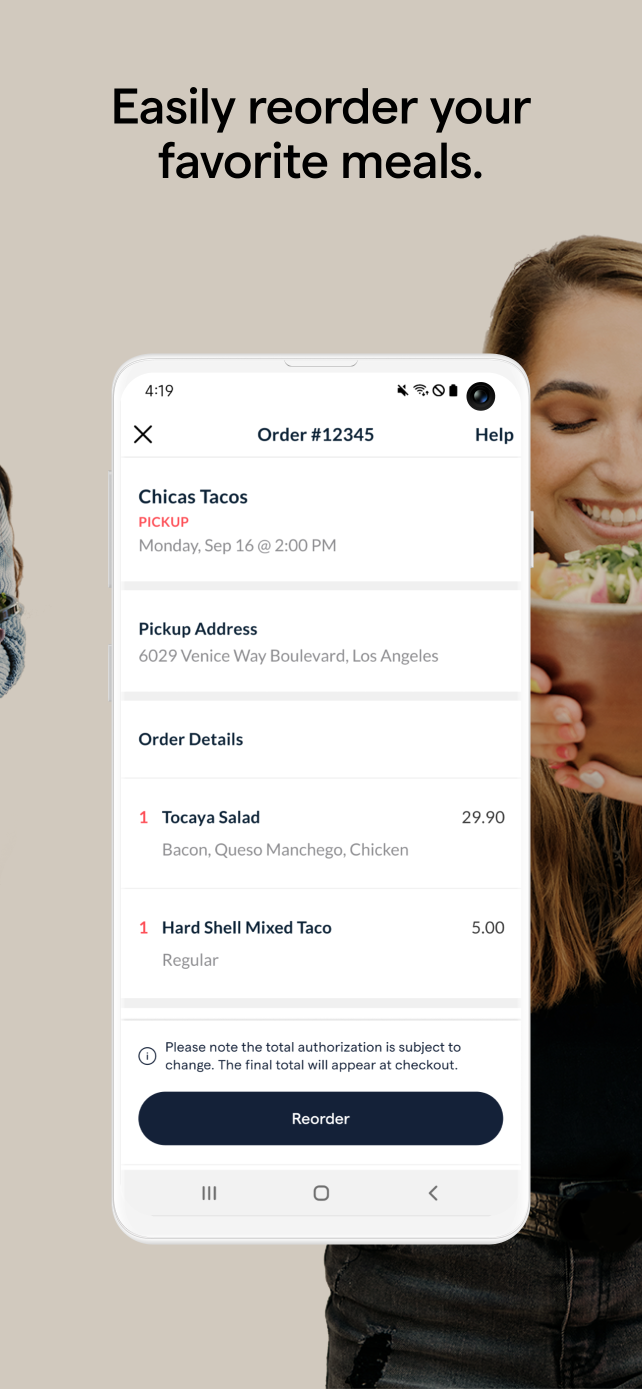 Ordene con anticipación, salte la línea y pague con solo tocar un botón usando Google Pay. Almacene de forma segura la información de su tarjeta de crédito en su cuenta de ChowNow para que pueda obtener mejor comida para llevar más rápido.