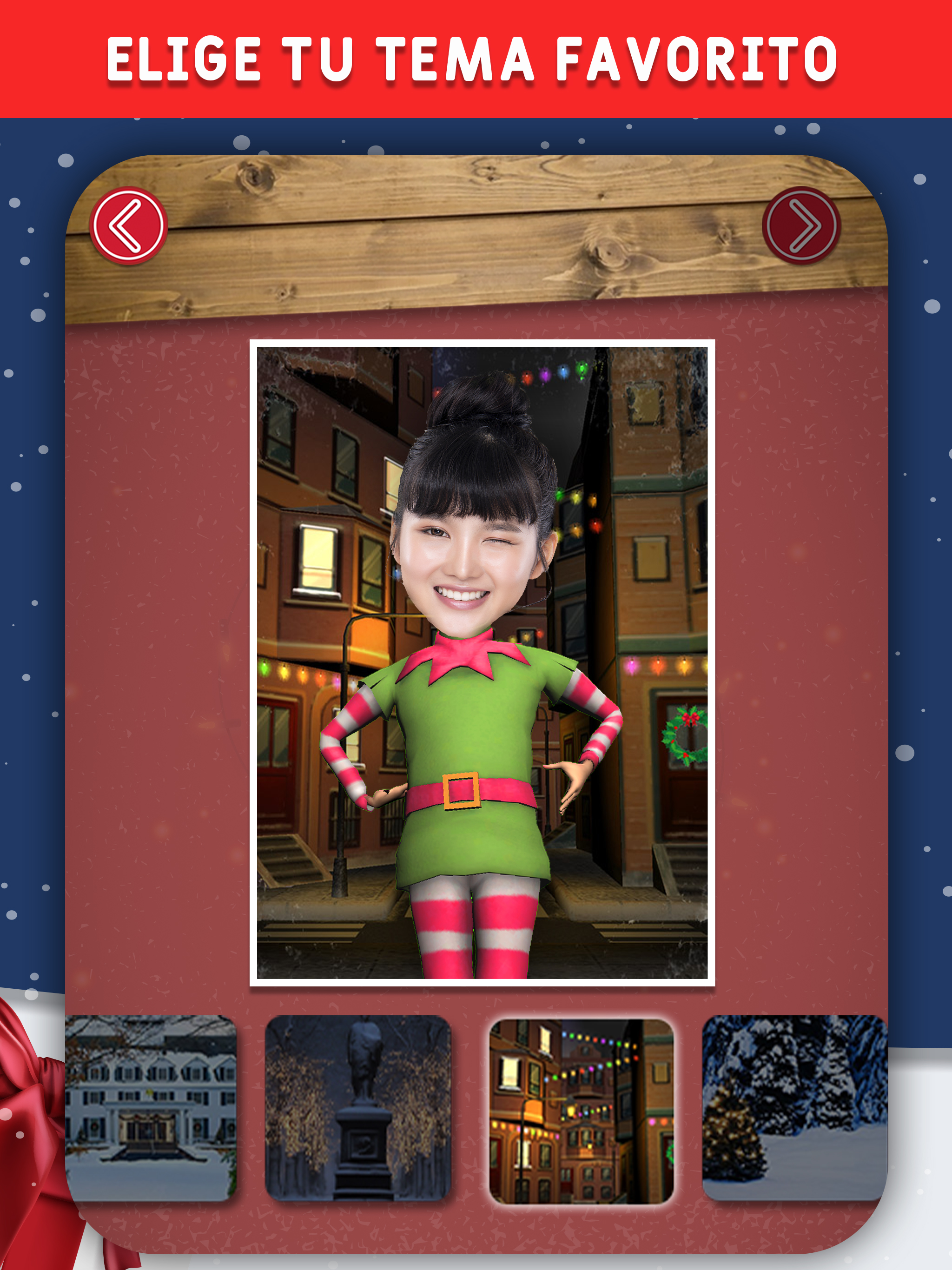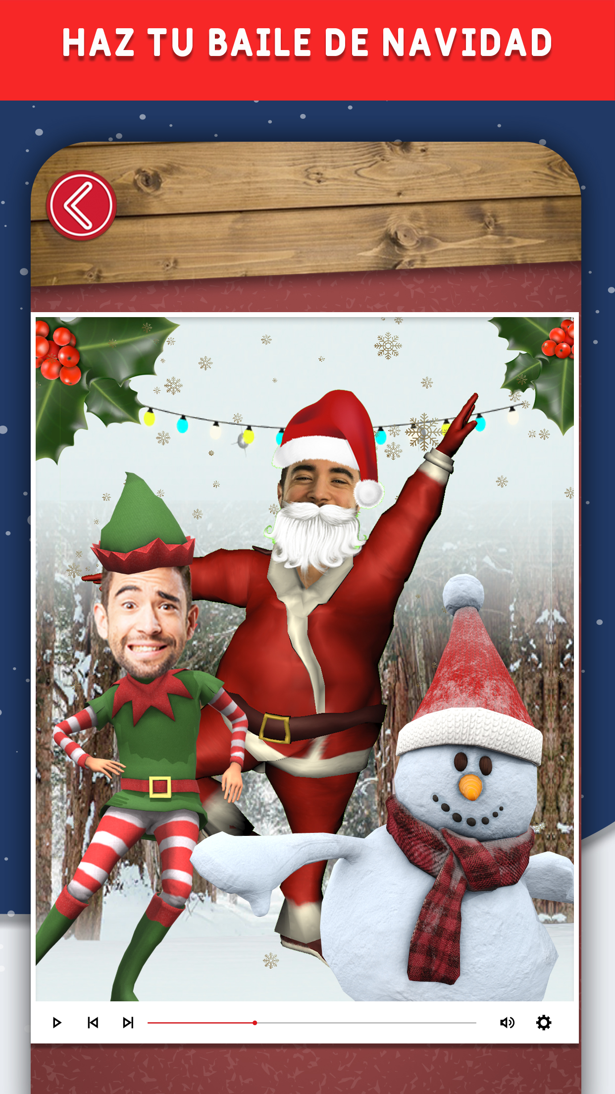 Las vacaciones están casi aquí, y ya sea que estés usando un feo jersey navideño, cantando villancicos o simplemente esperando la visita de Papá Noel, hemos creado la mejor aplicación navideña para que entres en el espíritu navideño. ¡La mejor aplicación de baile de la temporada navideña está aquí con nuevos bailes y características! ¿Te gustaría felicitar la Navidad 2022 o el Año Nuevo 2023 con un vídeo en 3D con tu cara? Esto y mucho más es lo que os proponemos con esta app de bailes navideños, conviértete en un elfo o Papá Noel para bailar en vídeos navideños personalizados. Podrás ser un elfo, un muñeco de nieve o el mismísimo Papá Noel. Por otro lado, tendrás varios escenarios y diferentes tipos de baile entre los que elegir. Retomando el tema navideño, haz vídeos de Navidad 2022 con personajes en 3D con tu rostro y secuencias de baile muy divertidas. Algunos de los personajes disponibles son Papá Noel, muñeco de nieve o los elfos. Añade hasta tres fotos de amigos o familiares, selecciona un baile y genera tu vídeo personalizado de baile de elfos. PON TU CARA EN ELFOS Toma fotos de tus amigos o familia y coloca tu rostro en cuerpos de elfos y luego míralos bailar. Si quieres divertirte con tu familia esta Navidad, echa un vistazo a esta aplicación. Crea un divertido vídeo de baile de elfos con tu cara, con miembros de tu familia (incluidas tus mascotas) y amigos. Cambia las caras de los Elfos con las caras de otras personas o mascotas. Una vez que las caras estén puestas, selecciona un tema de baile y crea un vídeo divertido. Agrega diversión a tus vacaciones de Navidad con todos tus amigos y familiares en uno de los bailes de elfos más divertidos. Haz sonreír a todos y disfruta creando tu baile personalizado. Descubre diferentes temas, disfraces y complementos. BAILA CON TUS AMIGOS ¡Entra en el pueblo nevado de los elfos de Santa y deja que comience el espectáculo! Únete a tus amigos y familiares en un divertido baile de elfos. Disfruta de crear un nuevo baile y haz sonreír a tus seres queridos. Podrás elegir el número de personajes en la pista, el cuerpo donde colocar el rostro de tus amigos, familiares o el tuyo mismo, el jingle de fondo y los movimientos de los elfos. Agrega hasta 3 caras en tus vídeos de baile de elfos. Elige una foto de cada uno y haz que todos bailen juntos. Selecciona canciones de la biblioteca de música. FONDOS MÁGICOS Explora diversos escenarios y baila frente a los adornos navideños, bajo los árboles de Navidad o junto a los hombres de jengibre, un muñeco de nieve o un reno. Conviértete en una estrella de tu propio vídeo de baile. Pon tus fotos en las caras de elfos bailarines para felicitar la navidad. FELICITACIONES NAVIDEÑAS DIVERTIDAS Conviértete en un elfo y sé la estrella de un vídeo de felicitación navideño personalizado con elfos bailando. Elige un tema de baile y pulsa el botón crear para generar un vídeo personalizado de felicitaciones navideñas que puedas compartir con tus amigos y familiares. COMPARTE EN REDES SOCIALES Guarda tus vídeos de baile y diseña tarjetas navideñas para compartir en tus redes sociales. ¡Dale alegría a tus vídeos navideños con tu familia o amigos! ¡Haz una videollamada personalizada o envía un mensaje para compartir tus vídeos de baile con tus amigos y ver su reacción! Comparte tu vídeo en las redes sociales, ya sea por correo electrónico, Facebook, Instagram o simplemente guardándolo en tu teléfono para enviar un mensaje de texto y reírte con todos tus amigos. ¡Esta será tu aplicación navideña favorita! ¡Feliz Navidad y un Feliz Año Nuevo 2023!