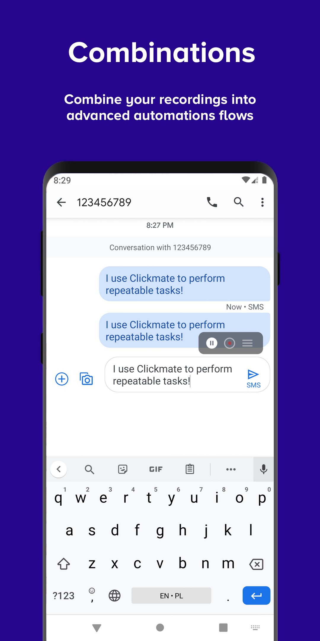 Compatibilidad con Tasker y MacroDroid: ¡Mejore su productividad con el complemento Tasker de Clickmate y cree flujos de automatización personalizados en Tasker o Macrodroid como nunca antes!