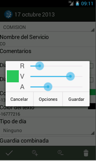 - Selección de colores. Ahora en servicios y tipos, se ha cambiado la ventana de selección de color, tanto para el texto como para el fondo, ahora es mucho más fácil de elegir el color deseado.