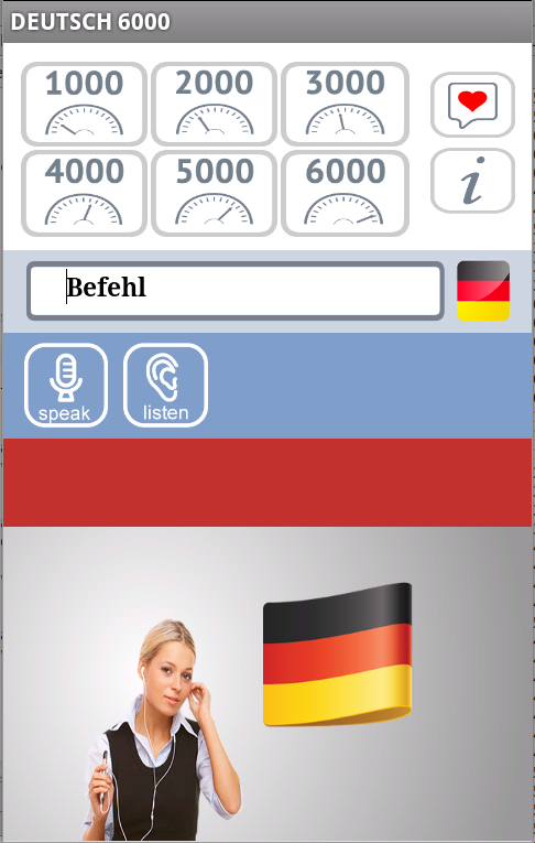 6000 palabras para los estudiantes del idioma alemán. Escuchar, leer, hablar y escribir la prueba. Aprender alemán con nuestro programa alemán 6000 de la escuela. Para hablar alemán con fluidez debe mejorar su pronunciación. Los ejercicios de pronunciación nuestros juegos gratis, van desde fácil a lo difícil, y pueden ayudarle. Oral Alemán vocabulario y la gramática necesidades, tales como verbos, modismos y frases. Este es el aprendizaje de por vida. Para participar en la conversación alemán necesita lo básico. Cómo utilizar esta aplicación En primer lugar, esta aplicación es un gran compañero de estudio alemán diccionario. Encontrar palabras en la aplicación, escuchar y hablar, y aprender a pronunciarlas, y luego ir a su diccionario alemán y aprender más acerca de lo que quieren decir! El software le permite probar tu pronunciación contra el ordenador. Puede desplazarse a través de las palabras rápidamente, o estudiar a su propio ritmo. Se puede introducir cualquier palabra que desea. En segundo lugar, los juegos educativos para la práctica de pruebas y exámenes. En tercer lugar, si va a vivir en países de habla alemana, entonces esta aplicación puede ser útil como una revisión 24/7 estudio. Esta aplicación puede ser útil en restaurantes en el pedido de alimentos, viajando en vuelos o de registrarse en hoteles. Se trata de la aplicación es principalmente para estudiantes de alemán de 18 años de edad. Podría ser utilizado por los usuarios más jóvenes, pero por favor, comprenda que esta aplicación tiene anuncios algunas de las cuales pueden no ser apropiados para los usuarios más jóvenes. Darle una oportunidad. Al descargar esta aplicación acepta los términos de nuestra licencia de usuario final (EULA) que se encuentran en http://eltsoft.com/eula/ y nuestra política de privacidad que se encuentran en http://eltsoft.com/privacy/ Google Translate for Business:Translator ToolkitWebsite TranslatorGlobal Market Finder