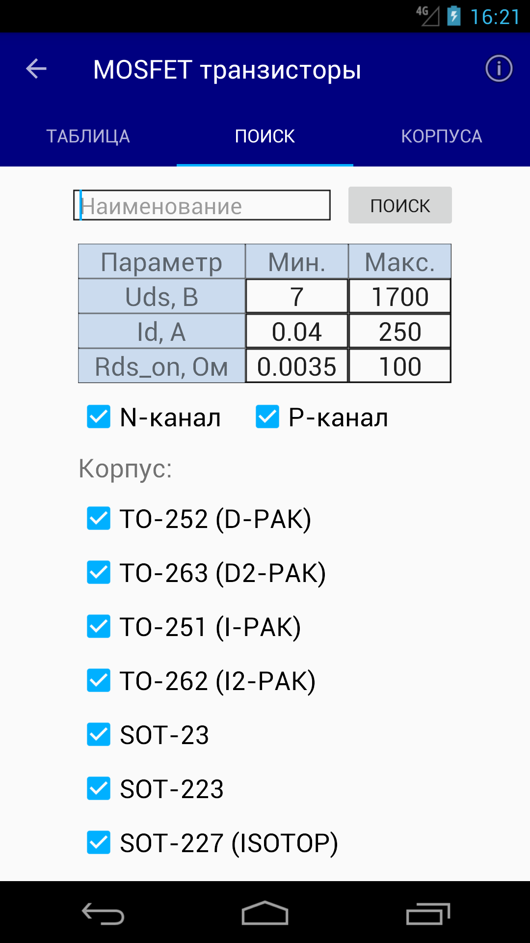 Electronics DB: параметры тран