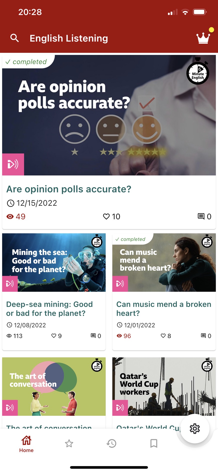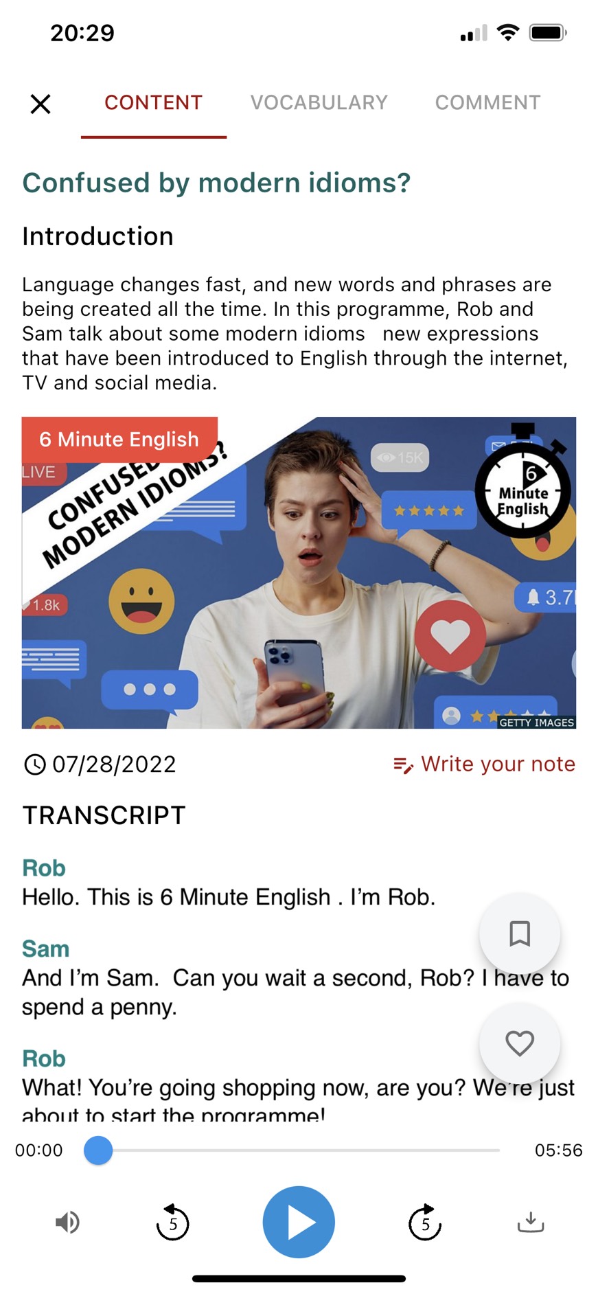 English Listening - 6mins, free app for English learner improve English skill. - Fixed bugs. - Support news lessons.
