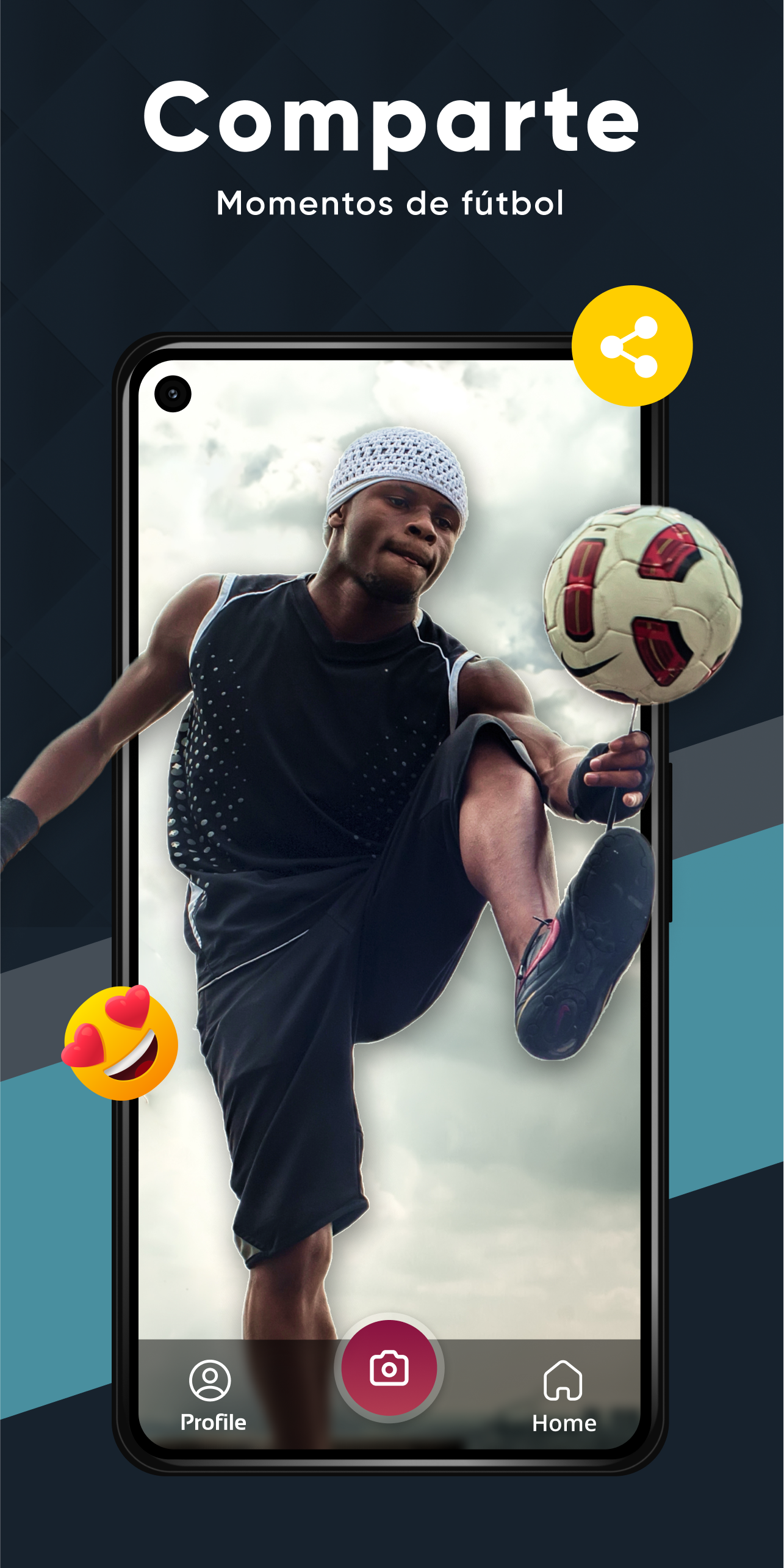 MUESTRA TU PASIÓNComo fan del fútbol, puedes utilizar nuestra función SnapIt para expresar tu pasión por el fútbol. Comparte historias e instantáneas mientras disfrutas de las historias de fútbol de otros fans del fútbol.