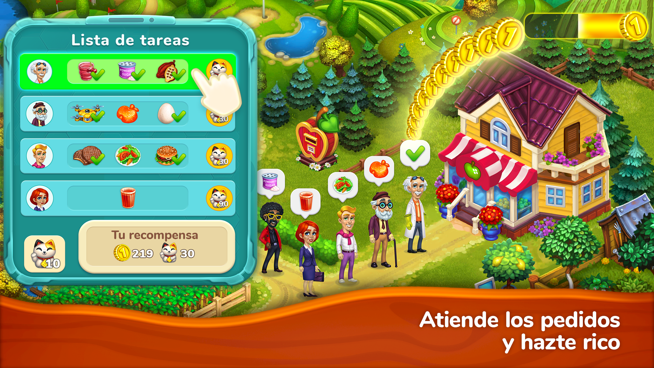 Refina las recetas de producción para mejorar la calidad de tus productos. Cumple las órdenes de sus ciudadanos, interactúa con tus vecinos: intercambia artículos e intercambia productos de tu granja.
