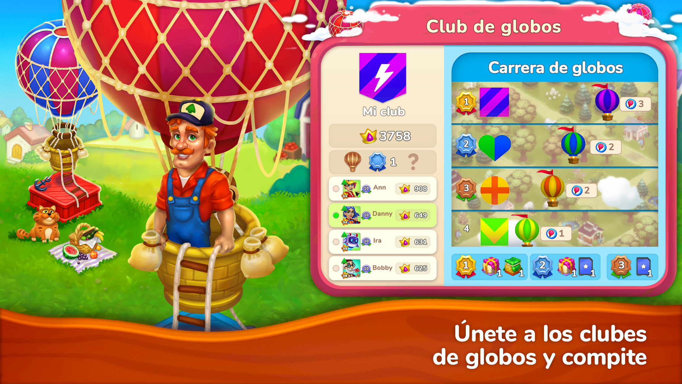 Amigos y clubes. Juega con tus amigos de Facebook y Game Center, haz nuevos amigos, ayúdense unos a otros en el hogar y gana recompensas y bonificaciones. Únete a las comunidades - clubes. Esto te permitirá participar en eventos semanales especiales y competir contra otros clubes. Puedes buscar amigos en el juego a través de Facebook.