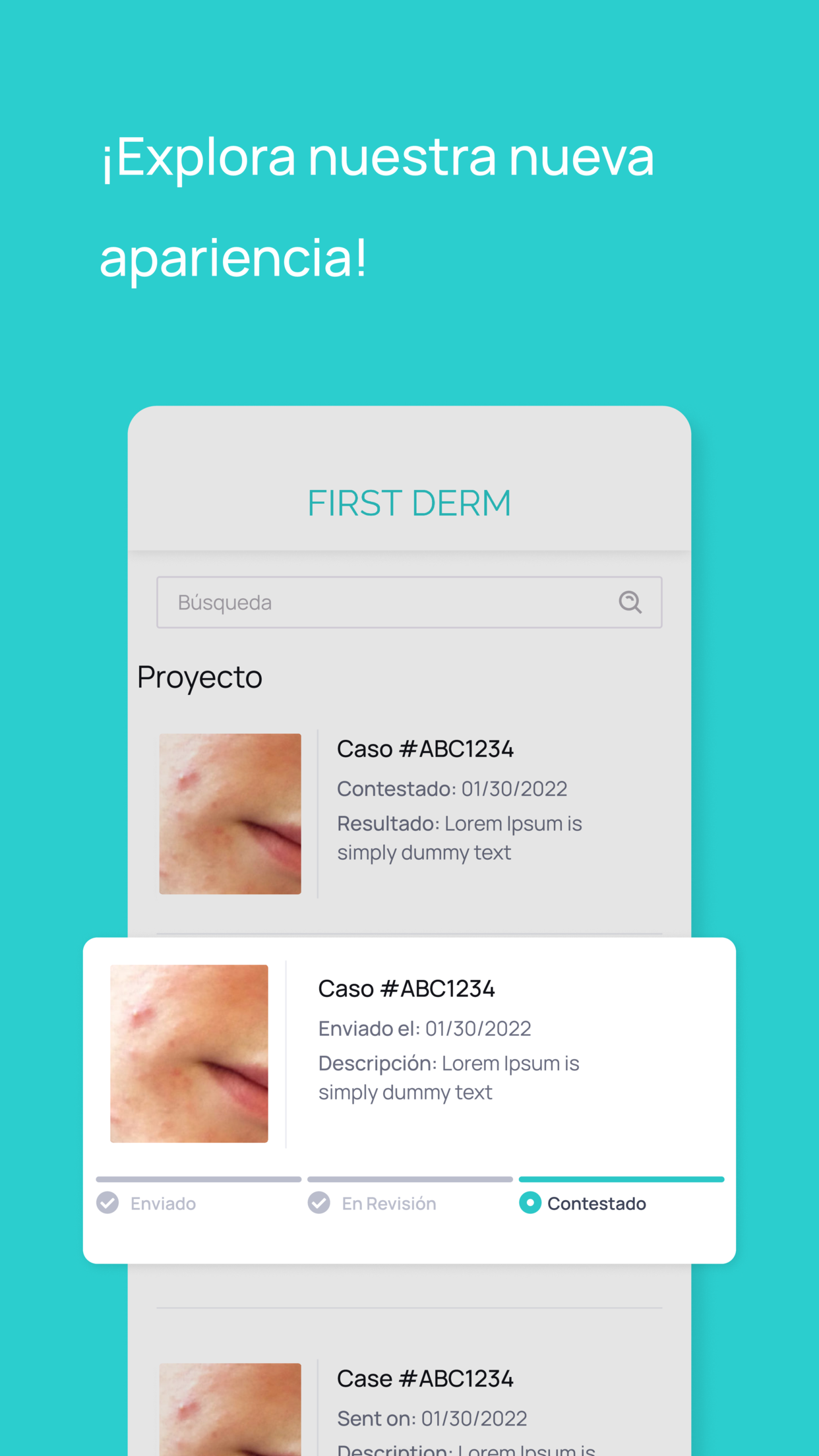 First Derm es la mejor aplicación de dermatología respaldada por estudios de investigación científica, con más de 400,000 usuarios. Nuestros dermatólogos certificados por la junta siguen siendo mejores que cualquier algoritmo dermatológico de inteligencia artificial (IA). Le ahorramos un tiempo valioso para encontrar una respuesta a su problema de la piel al buscar en Internet. Sin embargo, consultar a un dermatólogo real en línea con First Derm, ¡es más fácil y efectivo! Presentado en Wired, CNET, USA Today, Forbes y NPR, First Derm es uno de los servicios de dermatología en línea originales y más grandes del mundo, que atiende a más de 160 países en 7 idiomas. Nuestros dermatólogos en línea están certificados por la junta, examinados y capacitados en teledermatología. Esto los hace más eficientes, precisos y concisos cuando se trata de los problemas de la piel. No es necesario registrarse o crear una cuenta. Simplemente descarga la aplicación GRATIS y envíe su inquietud. Obtenga una respuesta experta sobre su problema de piel en cualquier lugar, en cualquier momento, de forma anónima en su iPhone. A partir de $29,95 (€25/£20). ***** ¿Por qué First Derm es tan popular? ***** RESPALDADO POR INVESTIGACIÓN: la tecnología de First Derm está respaldada por 4 artículos científicos revisados por pares y en hospitales. TIEMPO DE RESPUESTA GARANTIZADO EN 8 HORAS, 24 HORAS Y 48 HORAS - First Derm responde en cuestión de horas. Atención al cliente en línea las 24 horas, los 7 días de la semana. DERMATÓLOGOS CERTIFICADOS POR LA JUNTA: los dermatólogos de First Derm están certificados por la junta con más de 10 años de capacitación especializada en las principales instituciones médicas y son examinados por una junta asesora médica senior. 100% ANÓNIMO – No es necesario registrarse. Los datos del usuario siempre se mantienen anónimos, encriptados y en servidores seguros. COMPARTA SU RESPUESTA Y SÁLTATE LA COLA: el 70 % de nuestros usuarios mejoran con medicamentos de venta libre. Para casos más graves, First Derm recomienda un cara a cara con un dermatólogo. Use la aplicación para encontrar un dermatólogo, un pediatra y una farmacia cerca de usted. Con una respuesta de First Derm, nuestros usuarios ven a un dermatólogo dos semanas antes que el promedio estadounidense de 32 días. Las preocupaciones comunes incluyen: • Acné • Enfermedades de la piel relacionadas con virus • Sabañones • Livedo reticularis • Urticaria • Vasculitis • Eccema • Foliculitis (pelo encarnado) • Urticaria • Picaduras de insectos y picaduras de insectos • Pérdida de cabello, alopecia • Cáncer de piel, lunares, cambios de lunares, melanoma, queratosis actínica, carcinoma de células escamosas • Herpes labial, ampollas febriles, virus del herpes simple • Rosácea • Caspa, dermatitis seborreica, cuero cabelludo seco, cuero cabelludo escamoso • Piel seca, piel agrietada • Psoriasis • Arrugas y cuidado antienvejecimiento de la piel • ETS ( enfermedad de transmisión sexual) / ITS (infección de transmisión sexual) • Erupción cutánea • Condrodermatitis helicis nodular • Nevus intradérmico • Eritema Aviso: Las respuestas proporcionadas por los dermatólogos de First Derm son solo con fines informativos para brindarle tranquilidad y qué hacer a continuación, ya que usted es anónimo, no crea una relación médico-paciente y no es un diagnóstico o un plan de tratamiento.