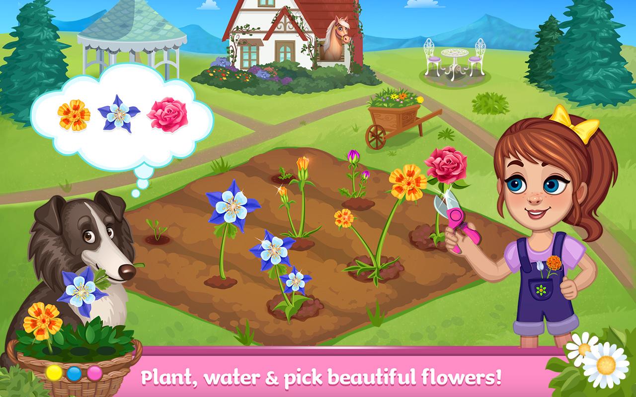 ¿Lista para demostrar tus habilidades con las flores? ¡Se dice en el pueblo que tú eres la mejor florista en la región! ¡Pero tener un hermoso jardín de flores significa trabajo duro y mucha imaginación! ¡Planta un sorprendente jardín de flores con la ayuda de tus adorables mascotas, incluyendo a Spot, el cachorro Dálmata y Oinker el cerdito! ¡Mantén a tus clientes felices plantando, cavando, regando y cuidando de las flores que ellos quieren!