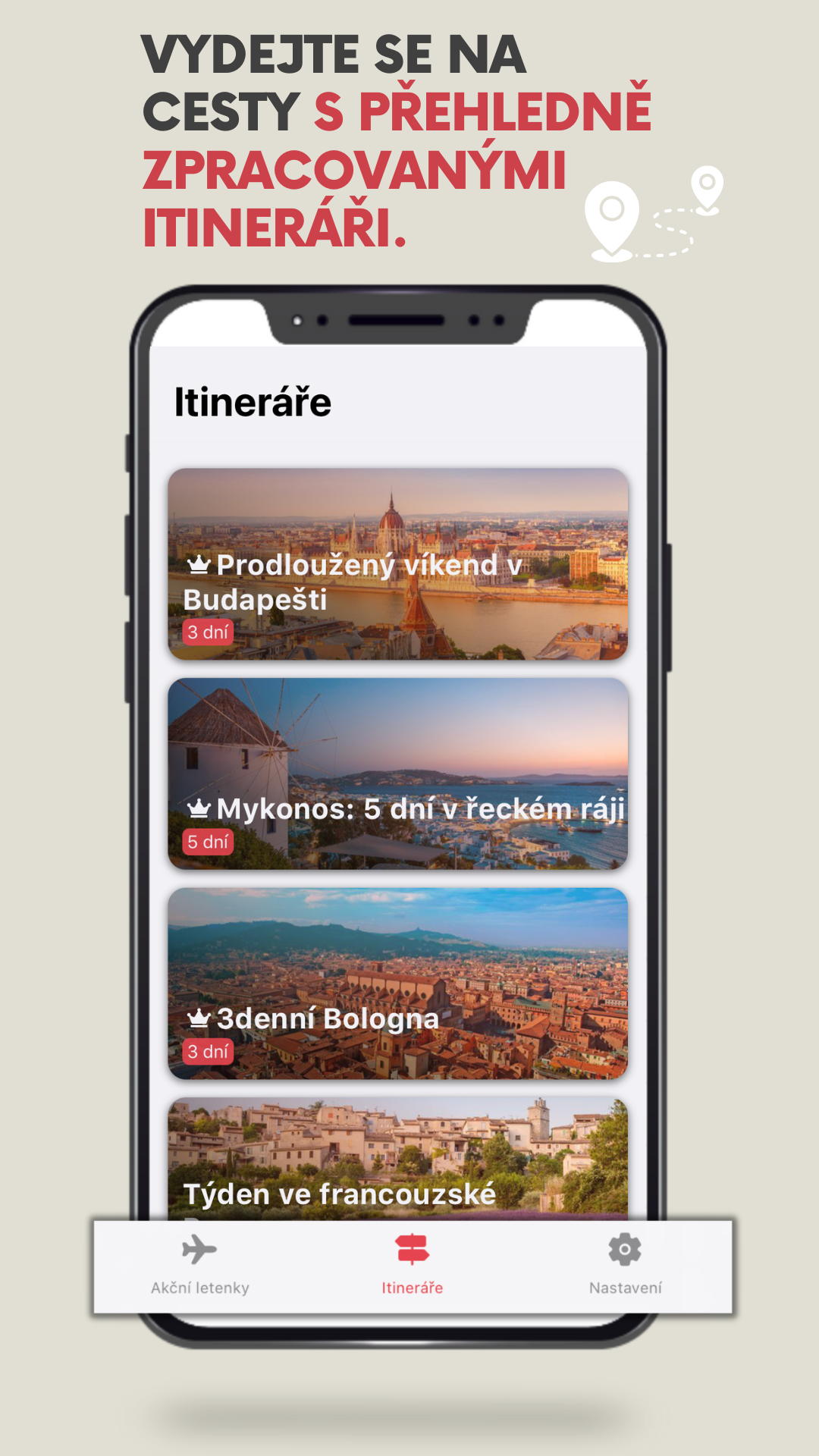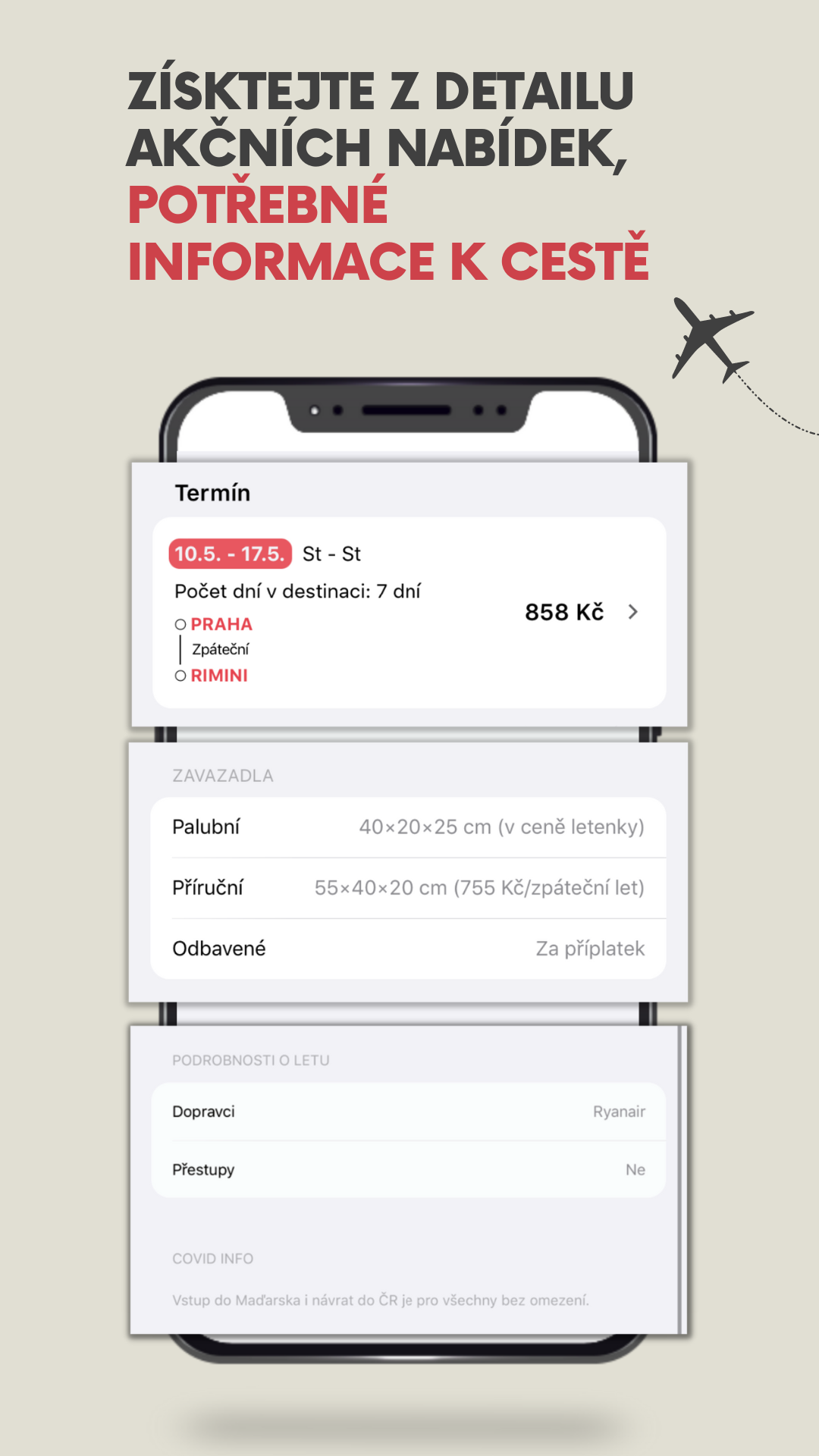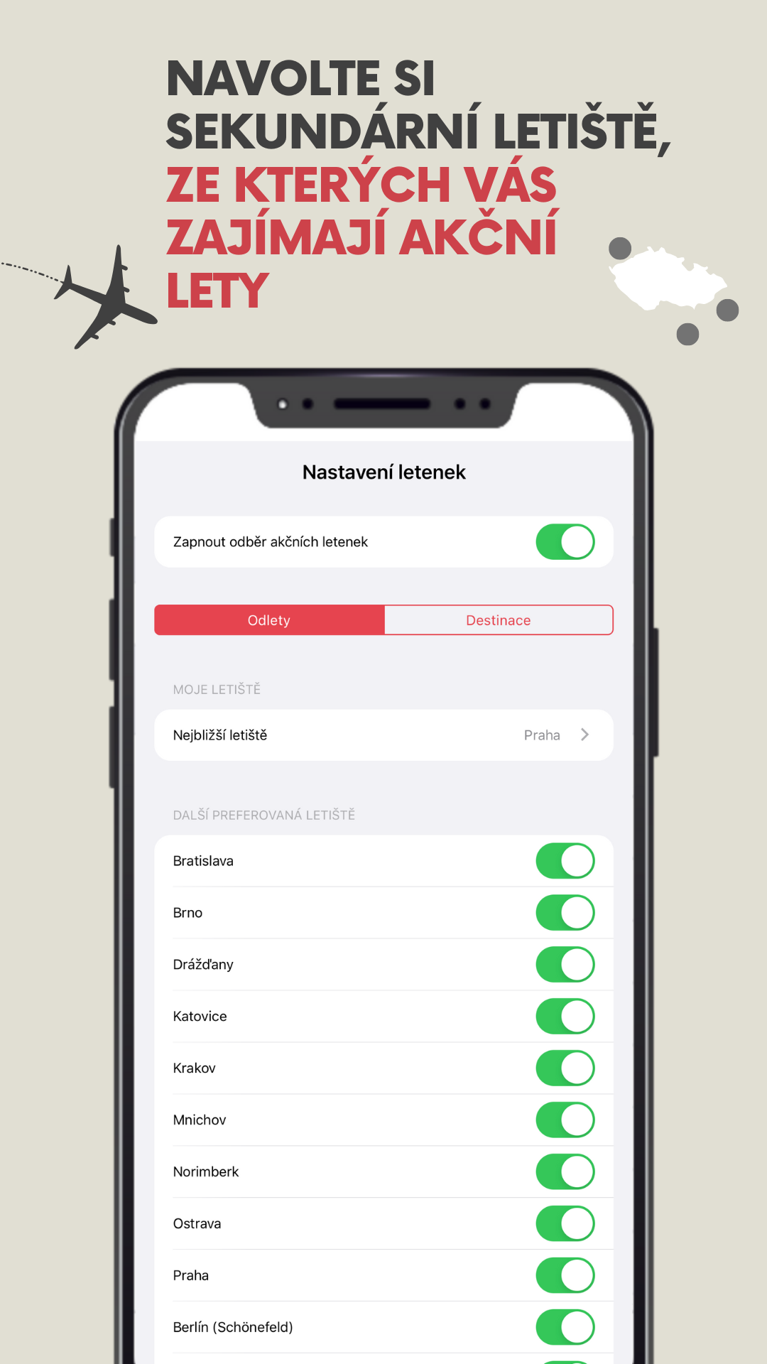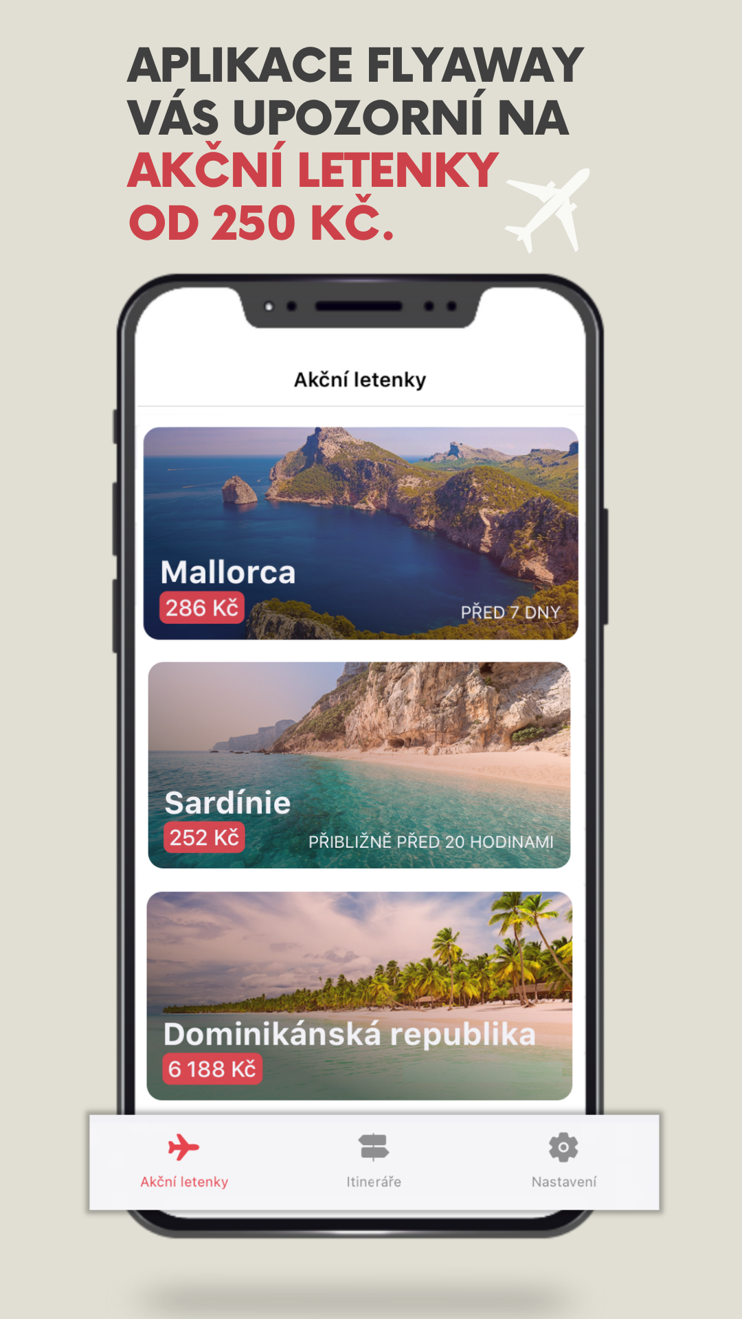 La aplicación FlyAway lo alertará sobre boletos con descuento a partir de 250 CZK. Ya no tienes que buscar vuelos baratos en ningún lado, la aplicación FlyAway monitorea los vuelos baratos por ti.