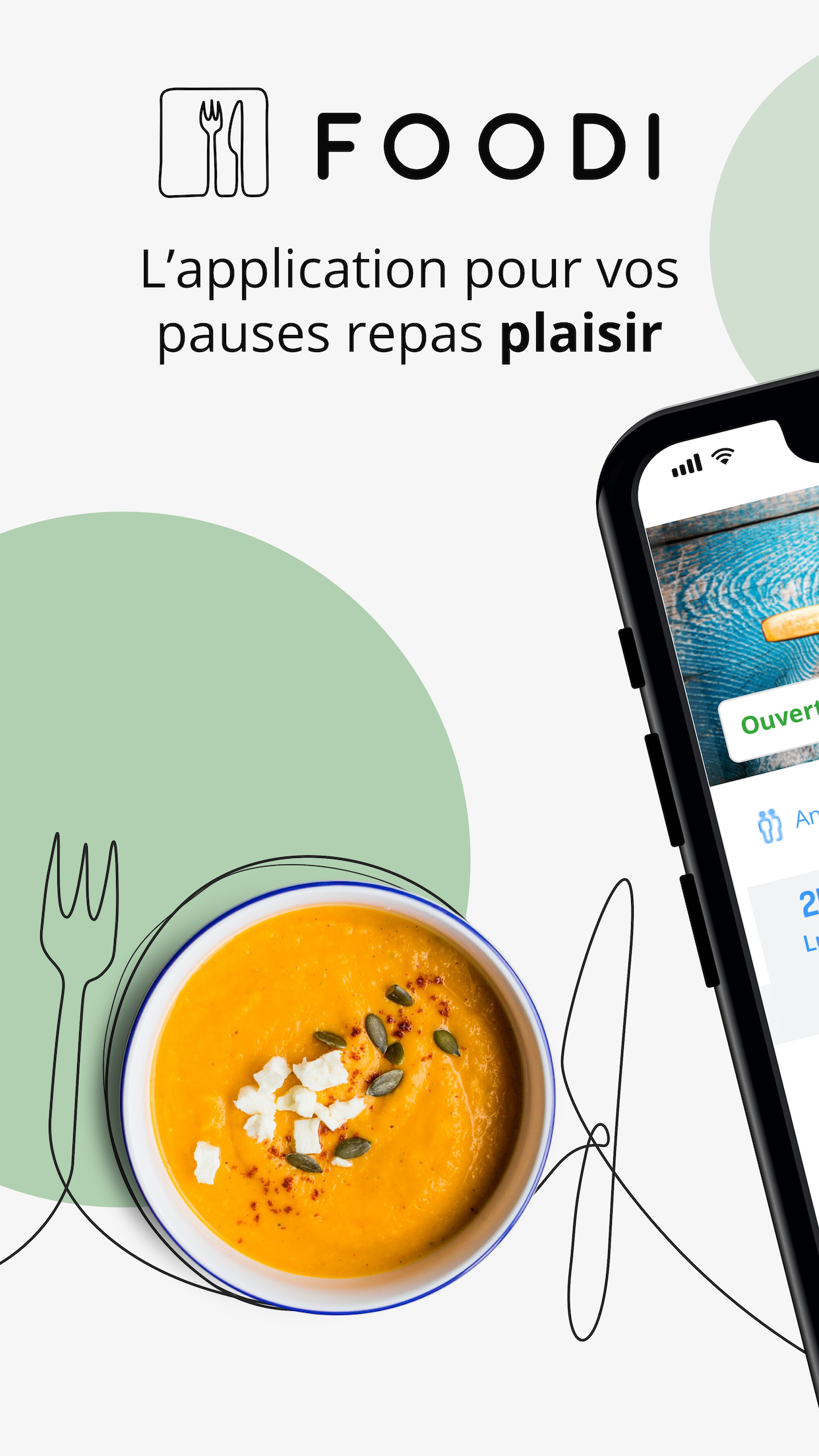 Si dispones de poco tiempo para la hora de la comida, Foodi vuelve a ahorrarte tiempo: pide tus productos, paga y recoge tu pedido en el restaurante. Es tan simple como eso !