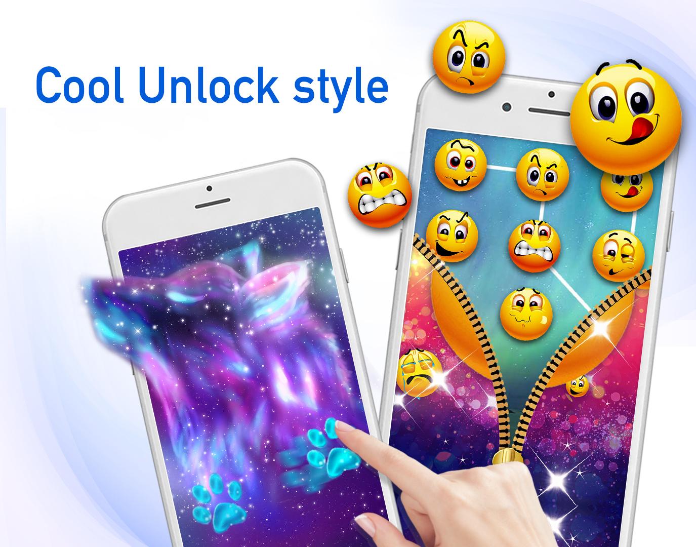 Principales características: Selfie del intruso, SOS y brújula, Potenciador de RAM, Panel de control, Retrato de bloqueo personalizado, Información del clima, Soporte de reproductor de música, Linterna en la pantalla de bloqueo, Soporte multilingüe, Diseño variable, Actualización diaria del salvapantallas en vivo, Notificación de fluidez, Pin y patrón