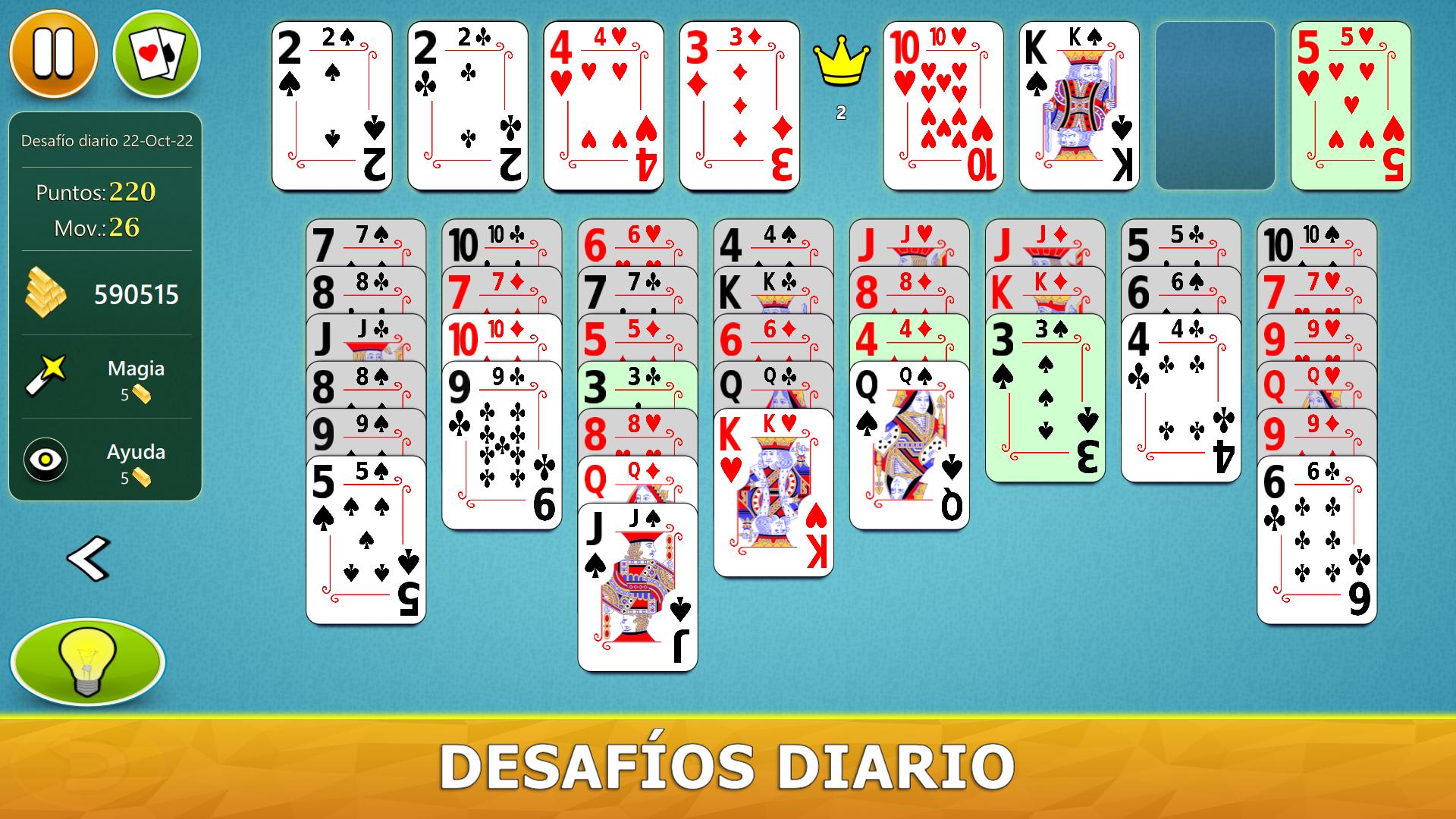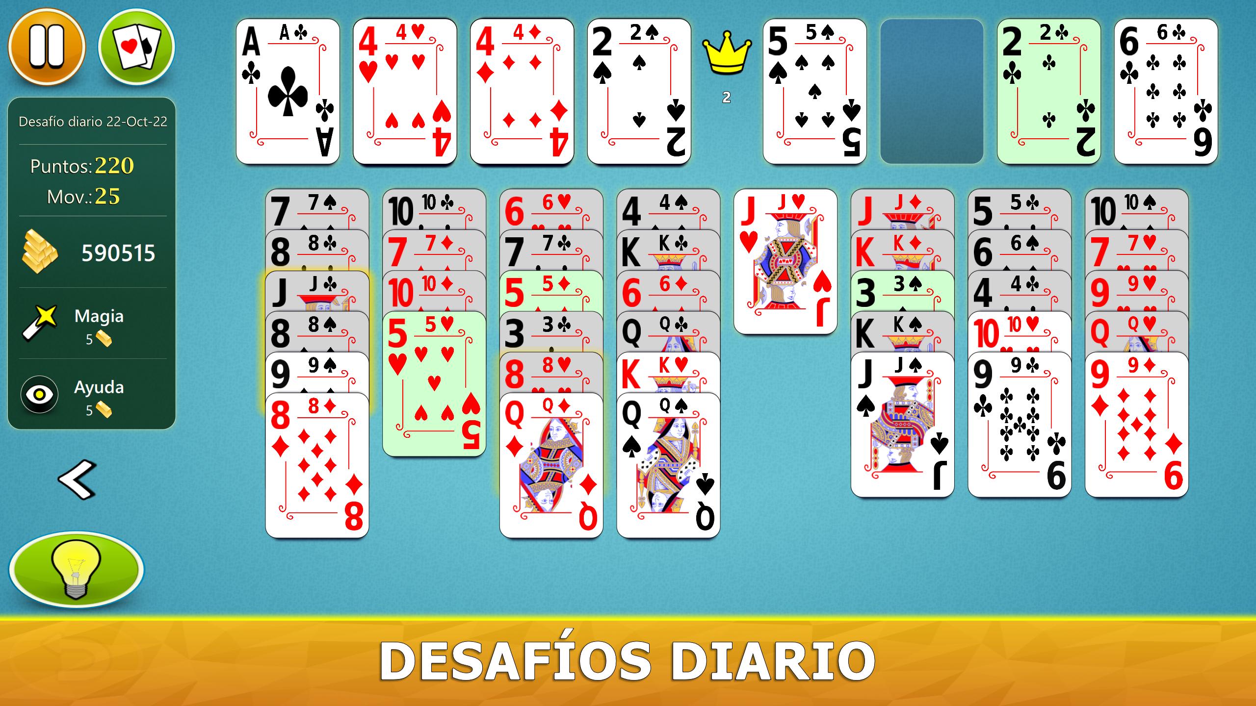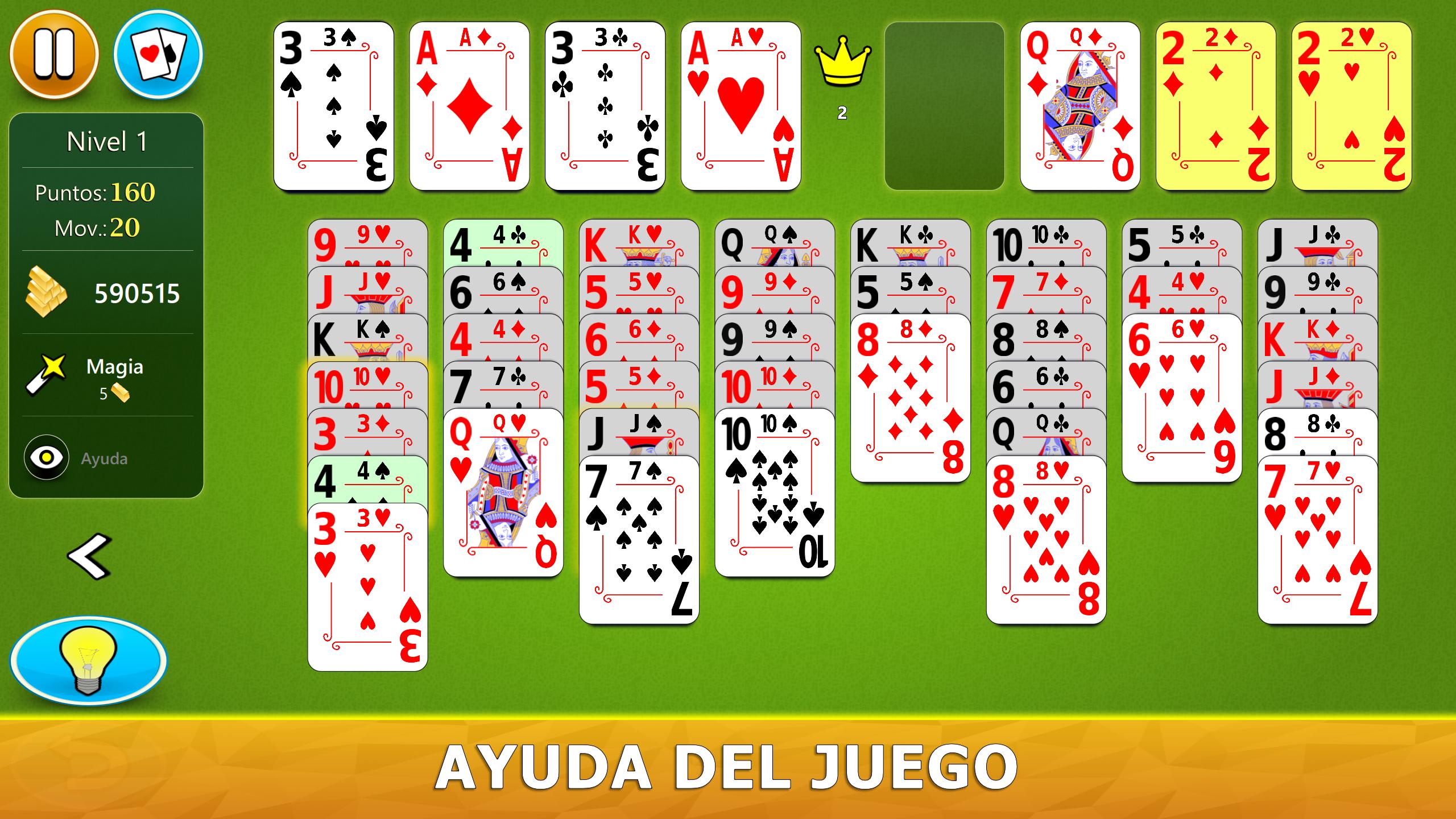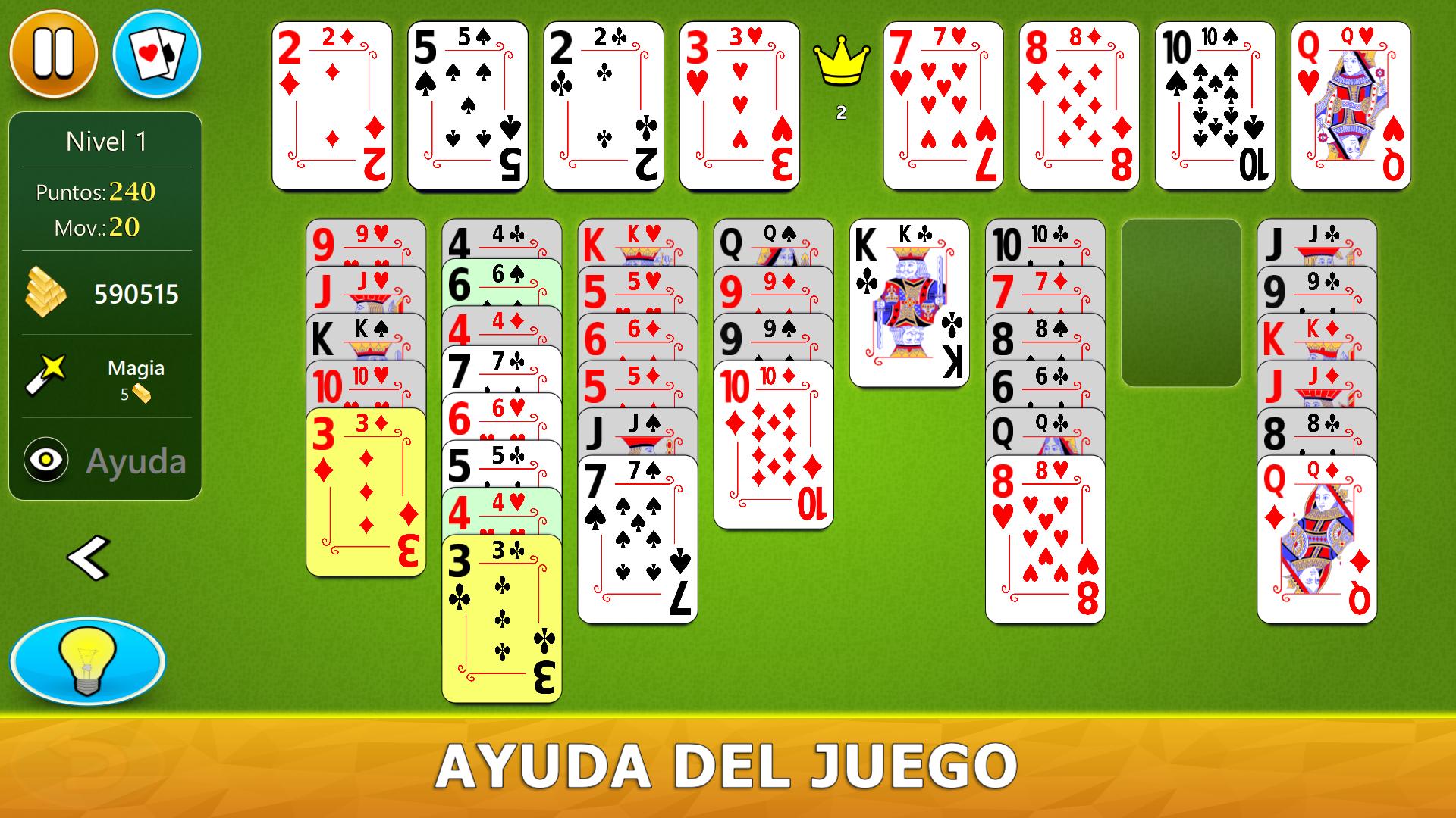 El juego tiene un sistema de ayuda visual inteligente. Le dará sugerencias útiles de una manera intuitiva. Si no ha jugado a Solitario FreeCell antes, nuestro sistema de ayuda le indicará paso a paso, en los mejores movimientos para hacer.