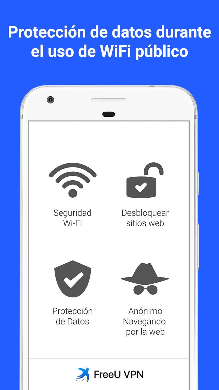 Red privada virtual (RPV o VPN, en inglés) para tu dispositivo Android. Siéntete libre dentro cuando estés en línea con FreeU VPN. Accede a redes sociales, sitios web, aplicaciones y tu correo electrónico. Haz uso de Internet sin límites ni restricciones. FreeU VPN es absolutamente gratuito: - Velocidad ilimitada - Sesiones que no caducan - Gratuidad absoluta Beneficios de FreeU VPN: - Acceso a redes sociales tales como Facebook, Twitter, Vkontakte (VK), Odnoklassniki y otras. Usa las redes sociales desde donde quieras y permanece en contacto con tus amigos, parientes y colegas. - Acceso seguro a sitios web, aplicaciones y tu correo electrónico. Navega por Internet sin restricciones ni límites. - Navegación en línea desde el anonimato. Oculta tu dirección IP y protege tus datos personales. - Protección de privacidad. Evita que roben tu identidad e información privada. - Protección de datos al utilizar zonas WiFi. Mantente a salvo del robo de datos inclusive si te encuentras en un lugar público. Los hackers no podrán interceptar los datos de tu tarjeta de crédito ni ningún otro tipo de información - Muchos sitios desde los que navegar. Accede a más contenido a través del uso de las ubicaciones que FreeU VPN te ofrece: los Estados Unidos, Singapur, los Países Bajos, Hong Kong, la India, Luxemburgo. - Atención al cliente durante las 24 horas, de lunes a domingo. Nuestro equipo de atención al cliente siempre va a estar encantado de ayudarte. Puedes usar FreeU VPN de manera gratuita, pero si deseas utilizar otras funciones adicionales, puedes actualizar fácilmente tu suscripción a una mejorada que te otorgará: - Acceso 100% ilimitado a Internet - Un rango de países más amplio desde los que navegar FreeU VPN te otorga libertad dentro de Internet a través de una navegación web ilimitada y segura, con la posibilidad de acceder a redes sociales, revisar tu correo electrónico y desbloquear sitios web. Permanece en contacto con sus amigos, parientes y colegas. Comienza a usar FreeU VPN ahora mismo.